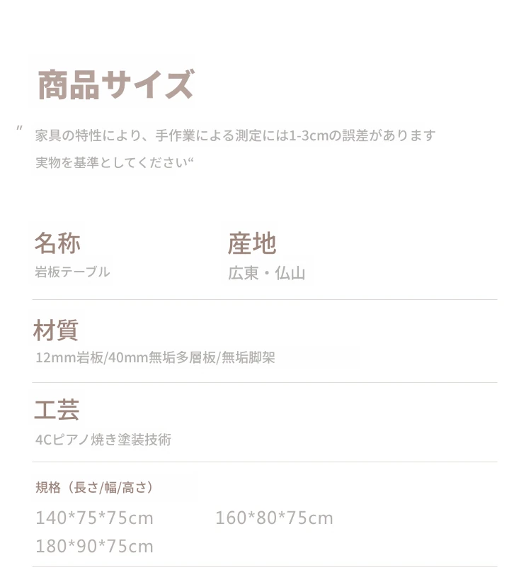 180*90CM 洞石岩板ダイニングテーブル