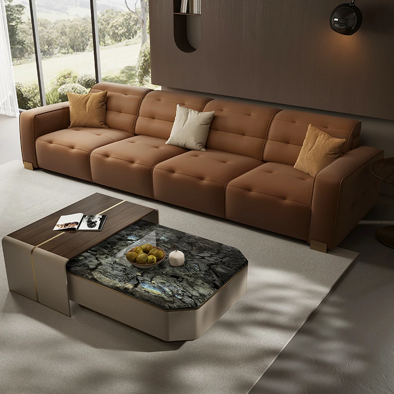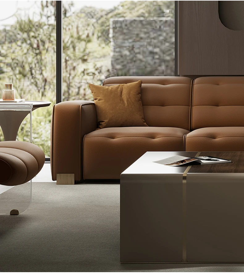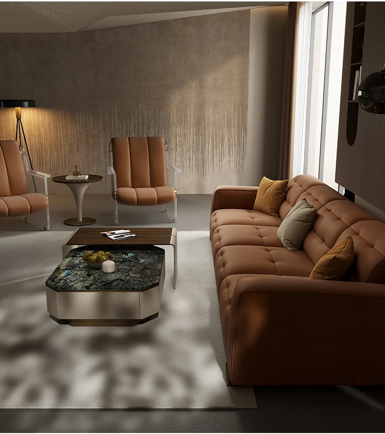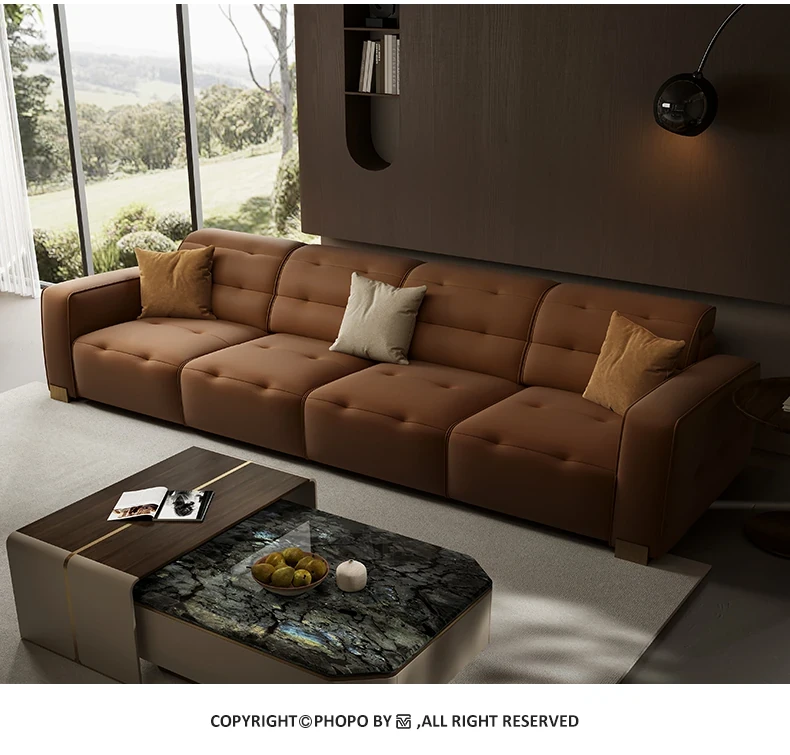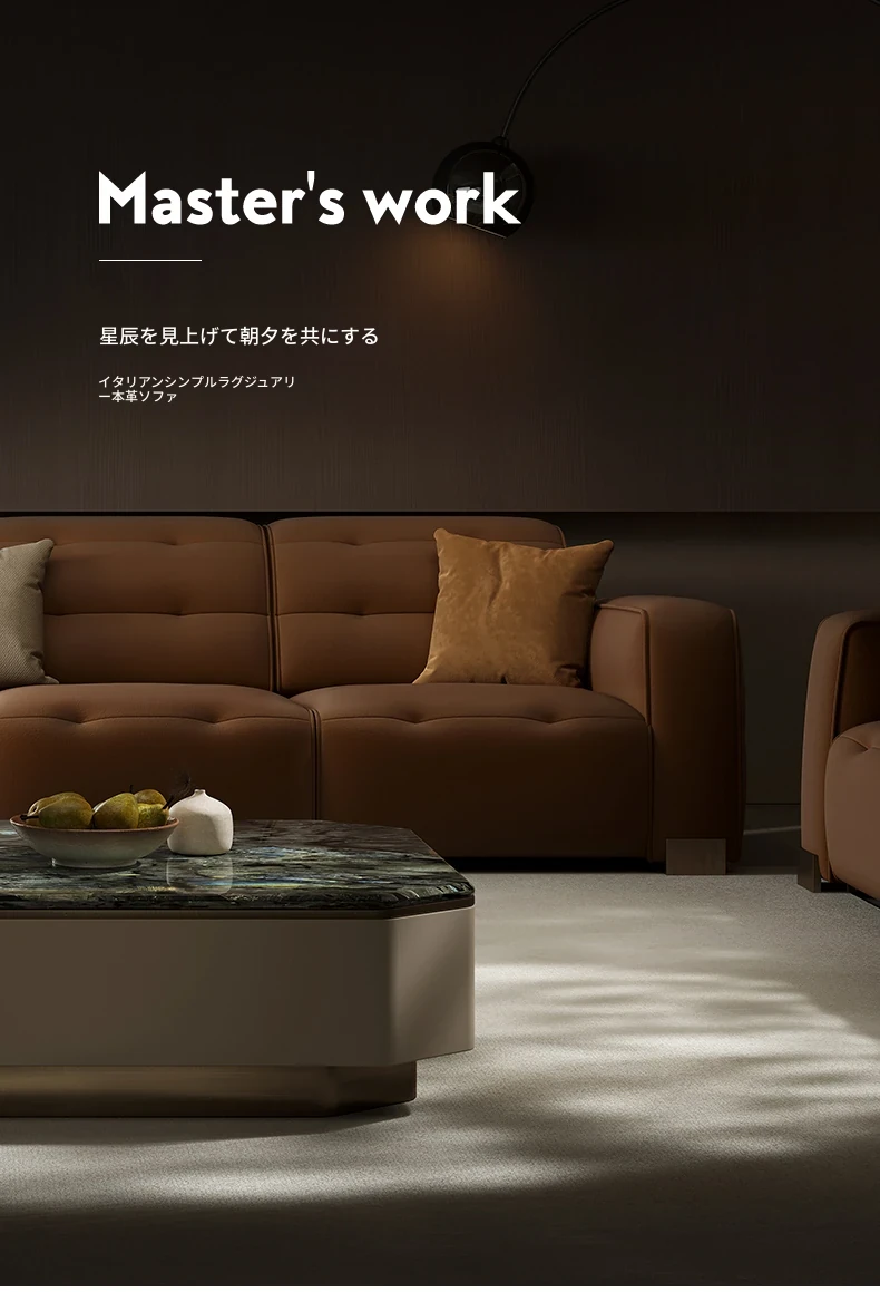 デザイナー皮製ソファ ヴィラ向け大平面リビング用ストレートソファセット イタリアンモダンなラグジュアリー本革ソファで、贅沢な空間を演出!