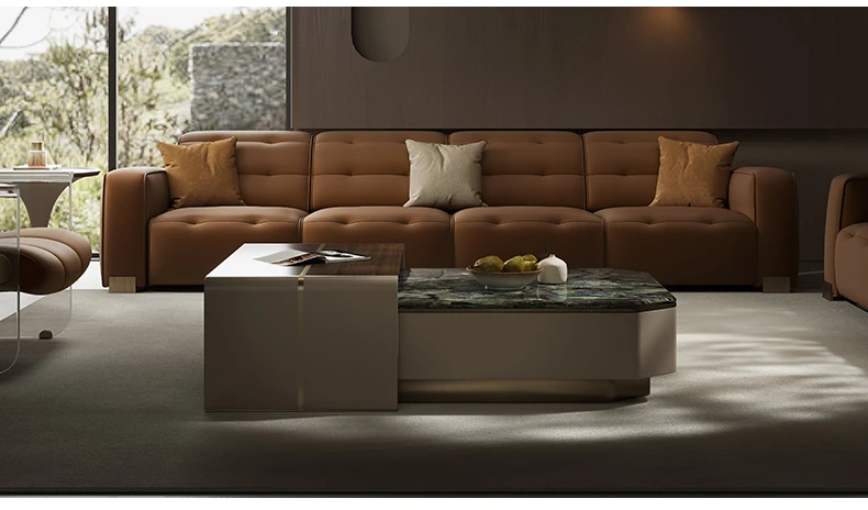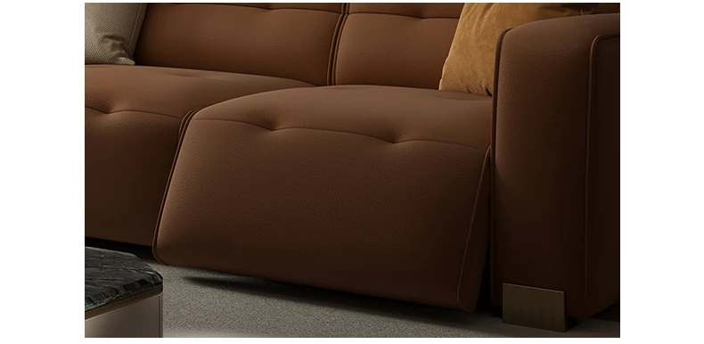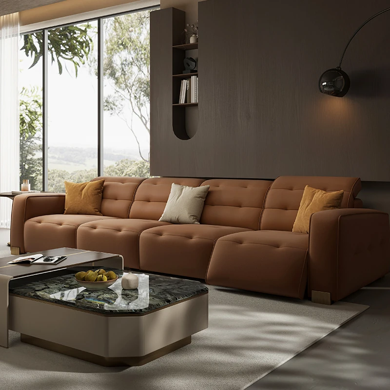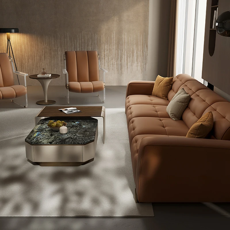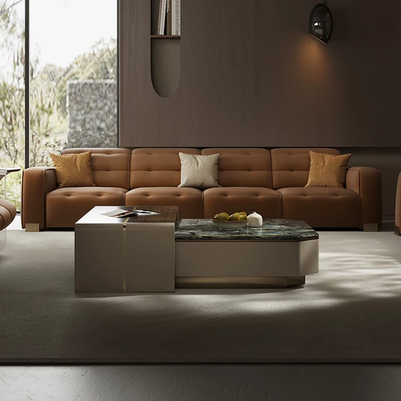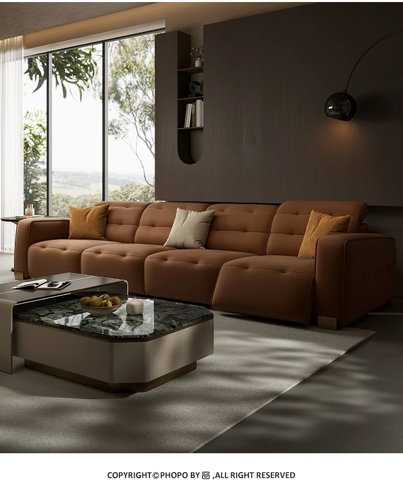 デザイナー皮製ソファ ヴィラ向け大平面リビング用ストレートソファセット イタリアンモダンなラグジュアリー本革ソファで、贅沢な空間を演出!