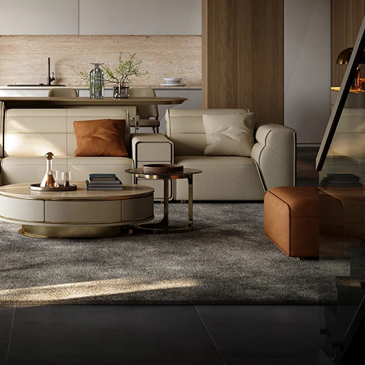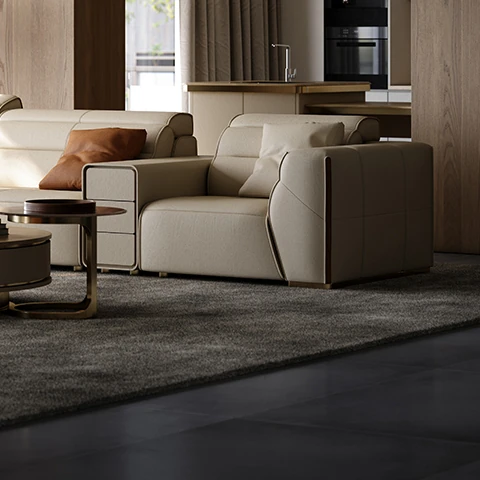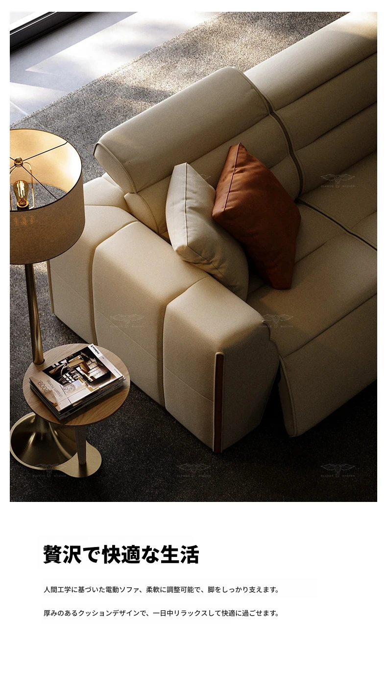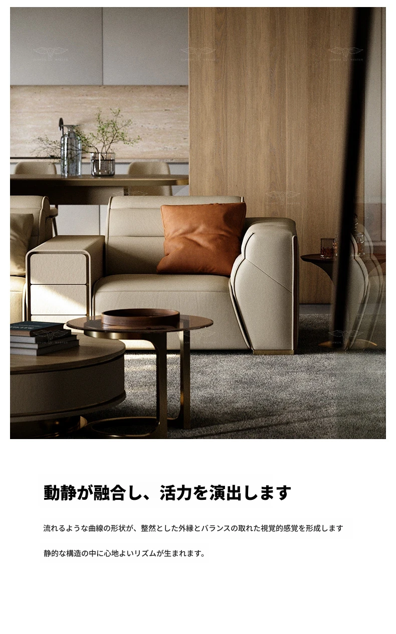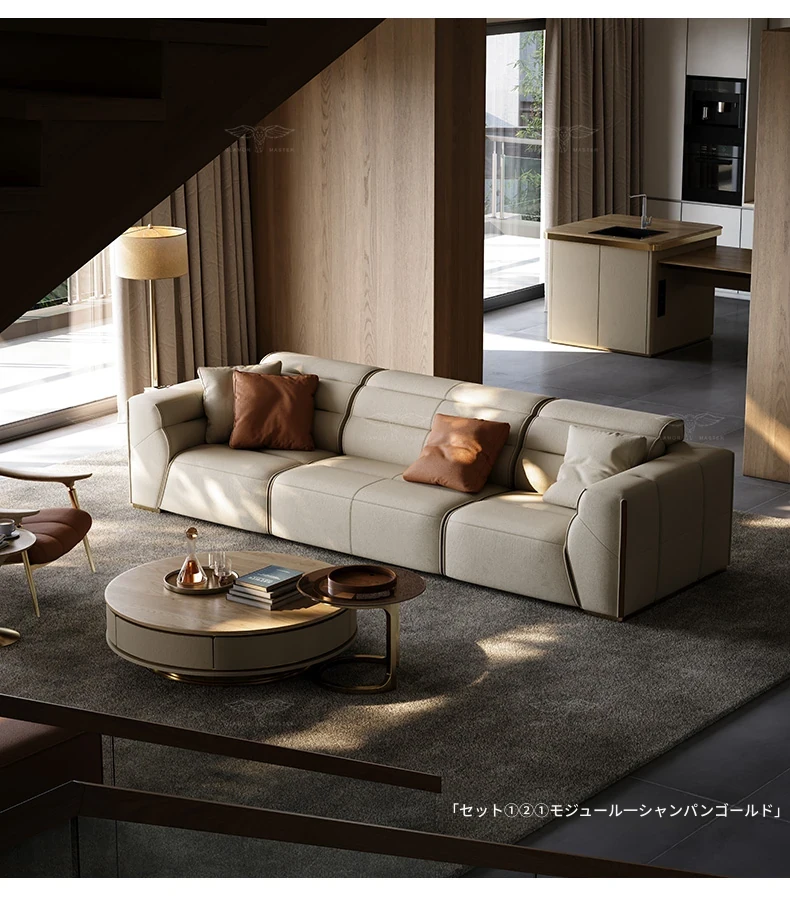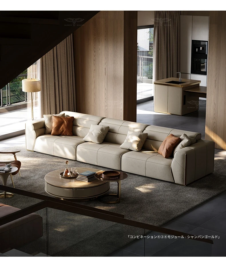 デザイナーリビングソファ 本革製 高級ラグジュアリー 別荘向け モダンなライトラグジュアリーソファで、贅沢なくつろぎの空間を演出します。あなたのリビングをスタイリッシュに彩る一品!