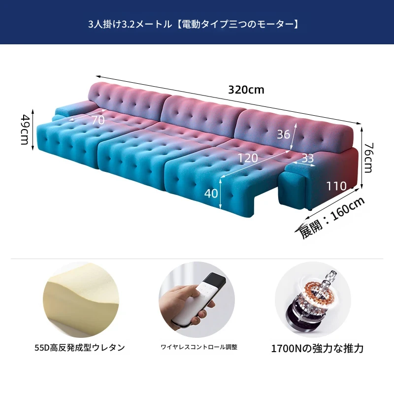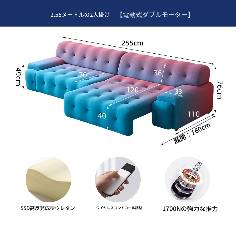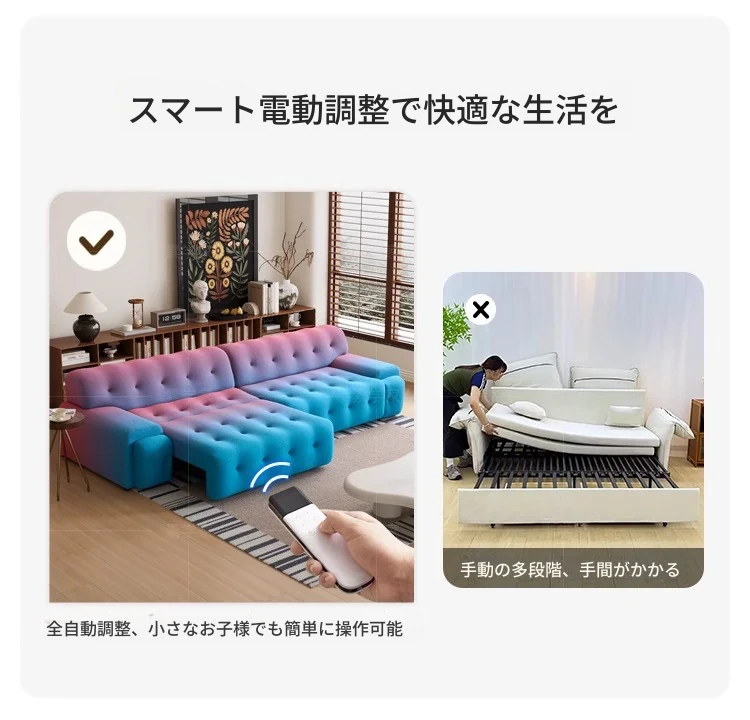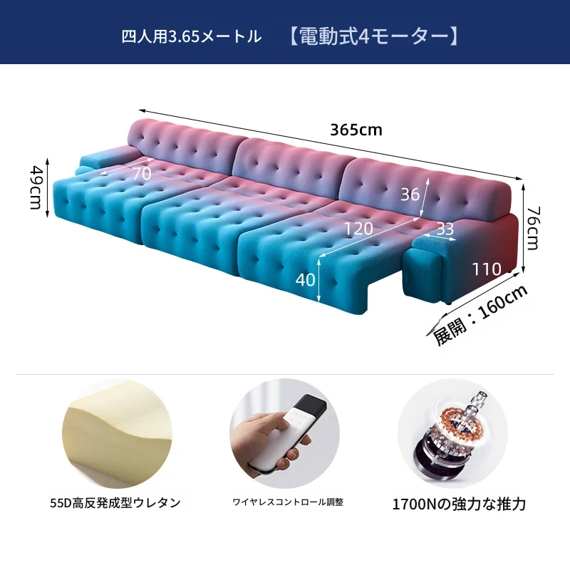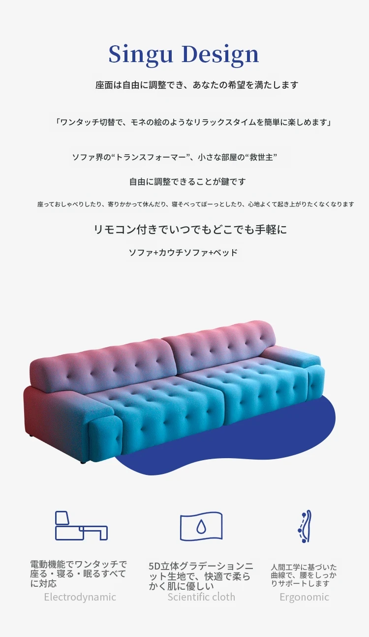 ダイナミックなドーパミンソファ!電動調整可能で、壁にぴったり寄せて伸縮自在。2025年新作・グラデーションロッジパーク布製ソファ。リビングに最適なスタイリッシュなデザインで、快適さを追求した一品です!