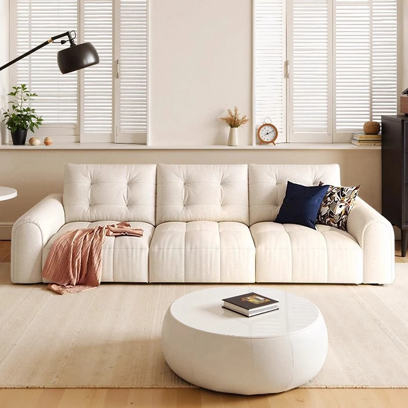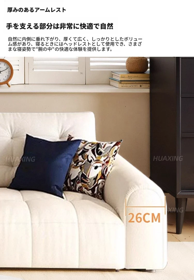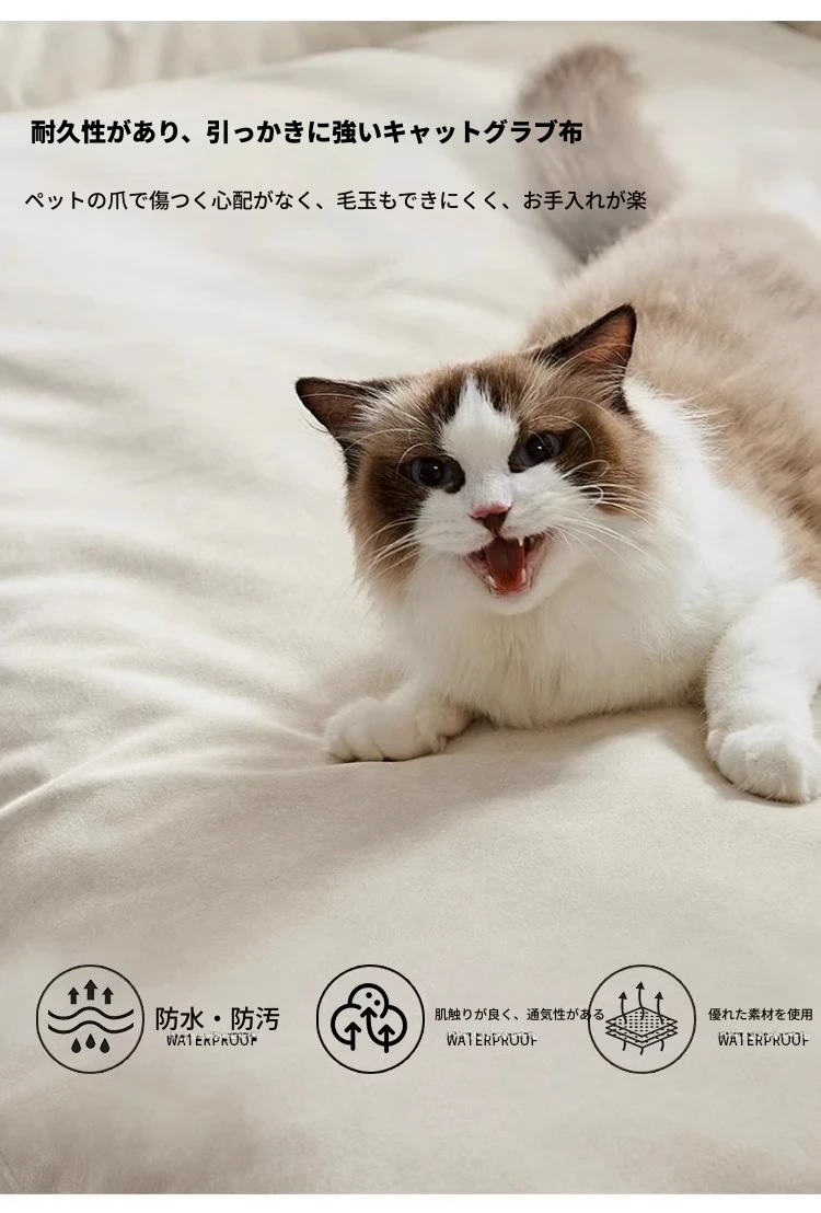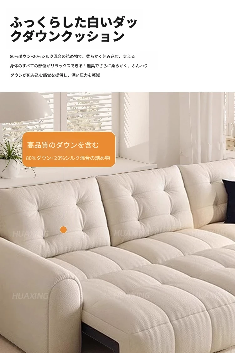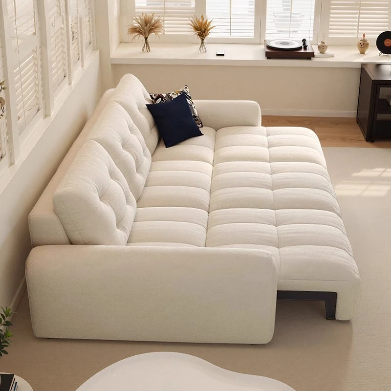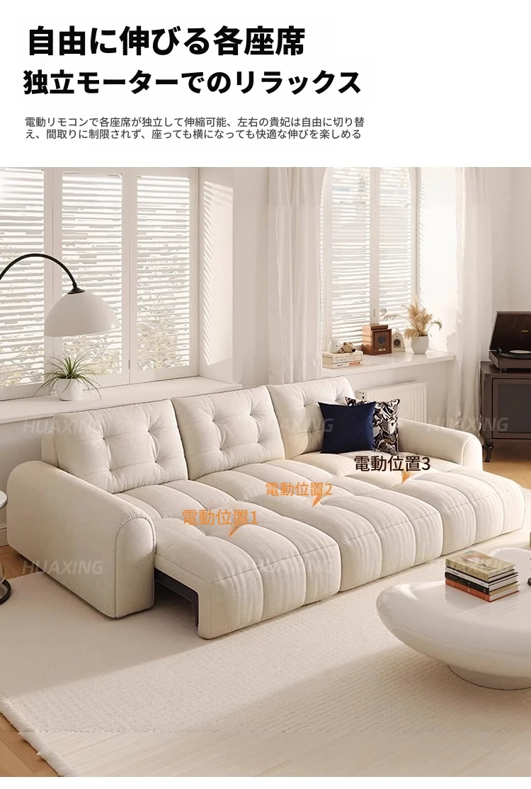 電動ファブリックソファベッド|猫爪防止の柔らかなクリーム色|小型リビングに最適|伸縮機能付き|おしゃれなパフソファで快適な空間を演出!