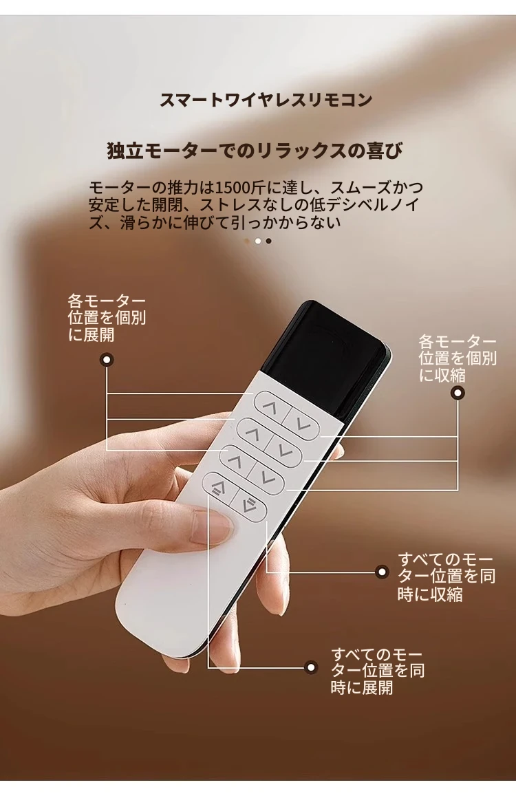 【肌触りが良く耐久性のある猫爪布】3.29メートル4人用【ワイヤレスリモコン4モーター伸縮】