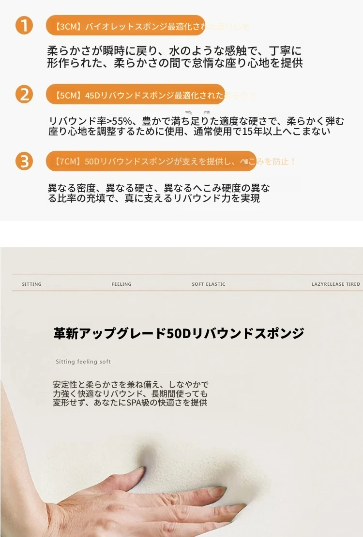 【ラテスタイプ】4CM洗浄ラテックス+バイオレットスポンジ+45D/50D高密度スポンジ