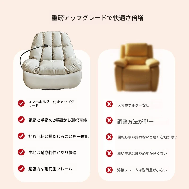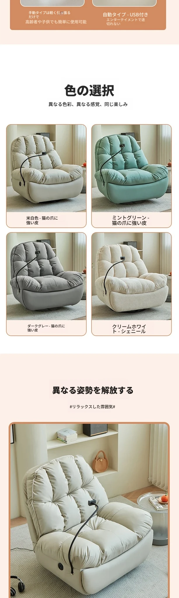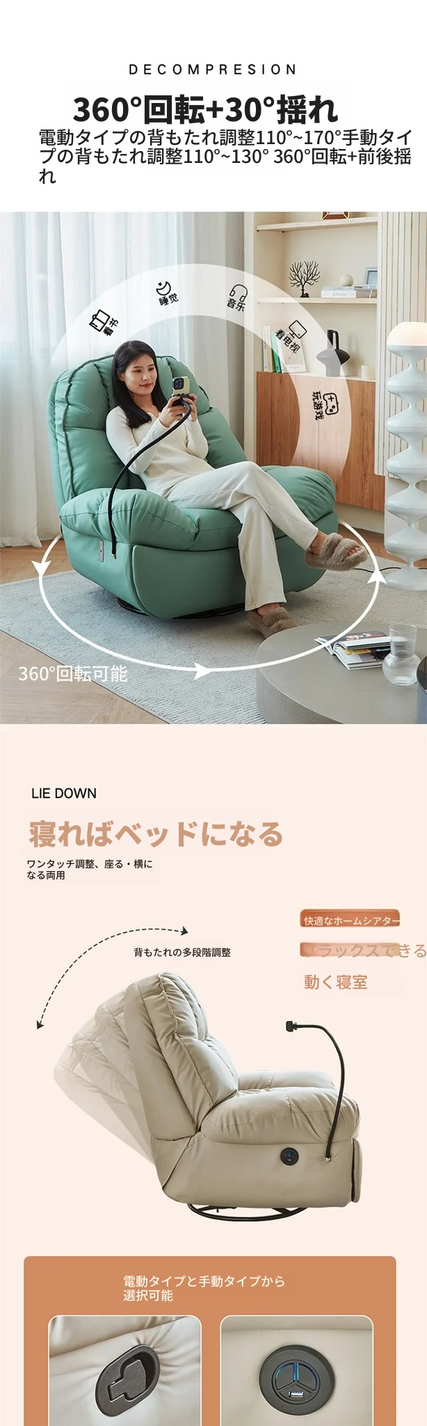 電動多機能ソファ・スペースカプセル型!おしゃれな小型リビングにピッタリの家庭用リラックス一人掛けチェア。あなたのくつろぎタイムを格上げする、人気のラウンジソファです!