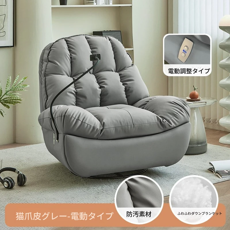 猫抓皮グレー-電動タイプ(リクライニング+スイング+回転+スマホスタンド)