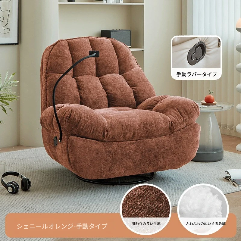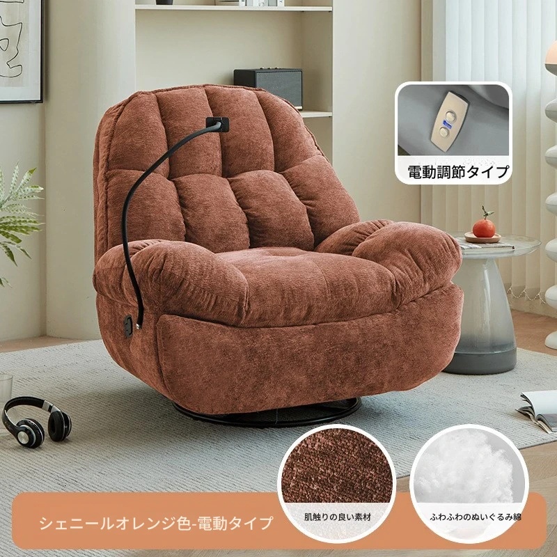 シュニールオレンジ-電動タイプ(リクライニング+スイング+回転+スマホスタンド)