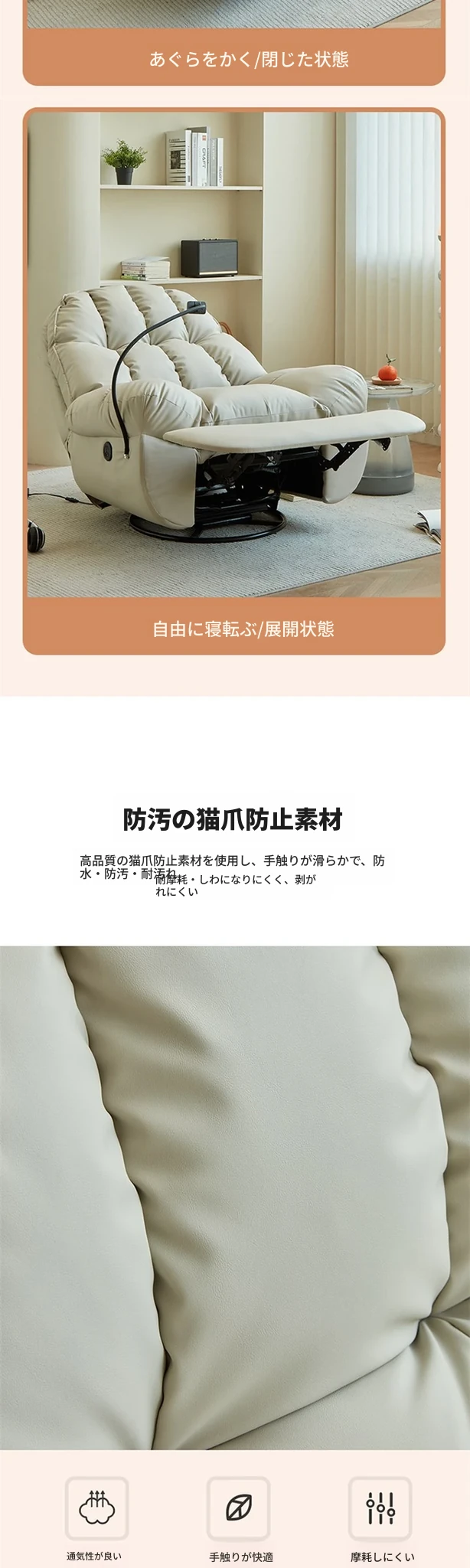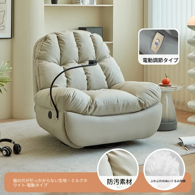 猫抓皮ミルクホワイト-電動タイプ(リクライニング+スイング+回転+スマホスタンド)
