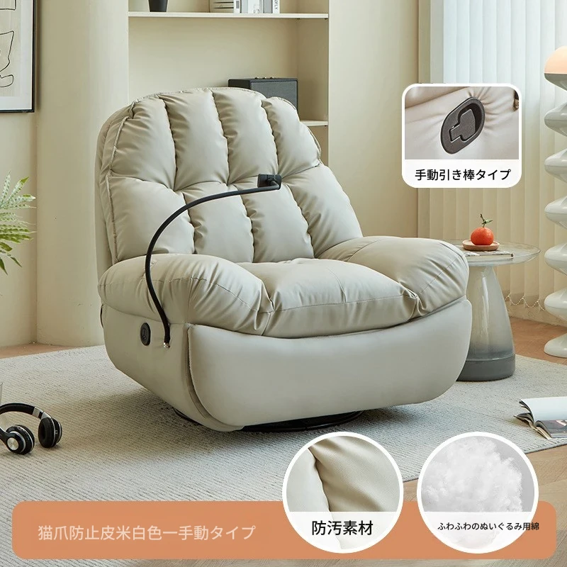 猫抓皮ミルクホワイト-手動タイプ(リクライニング+スイング+回転+スマホスタンド)