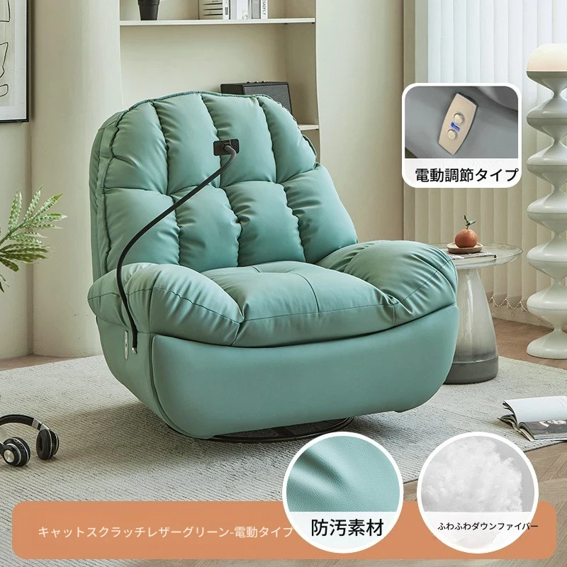猫抓皮グリーン-電動タイプ(リクライニング+スイング+回転+スマホスタンド)