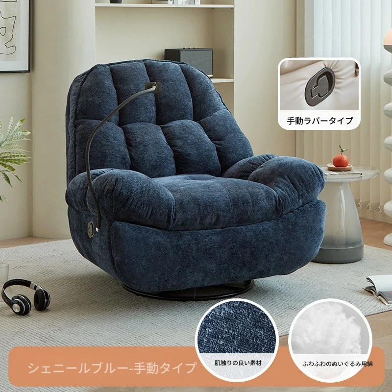 シュニールブルー-電動タイプ(リクライニング+スイング+回転+スマホスタンド)