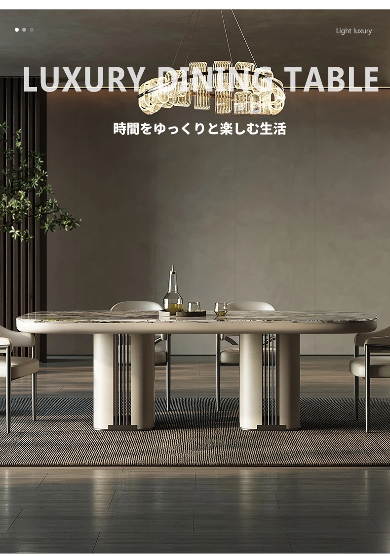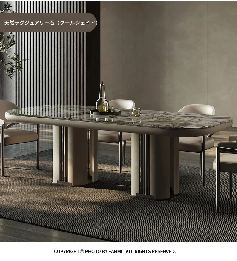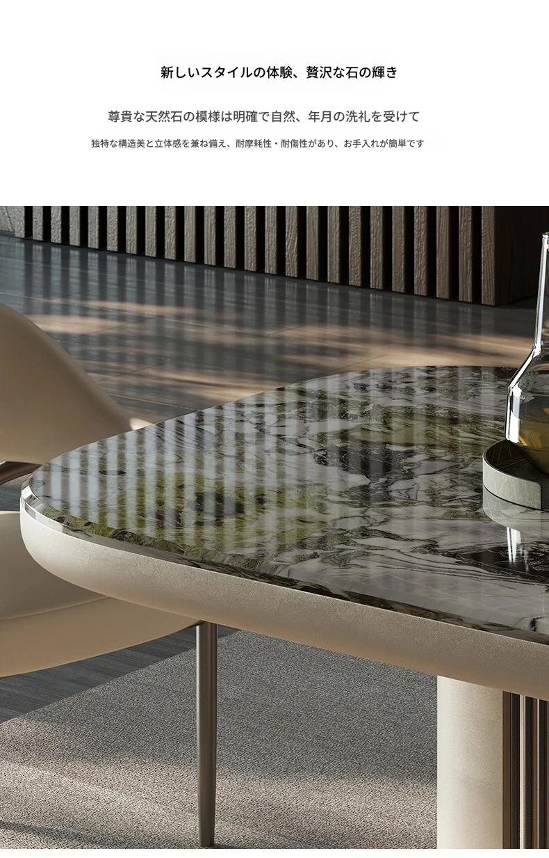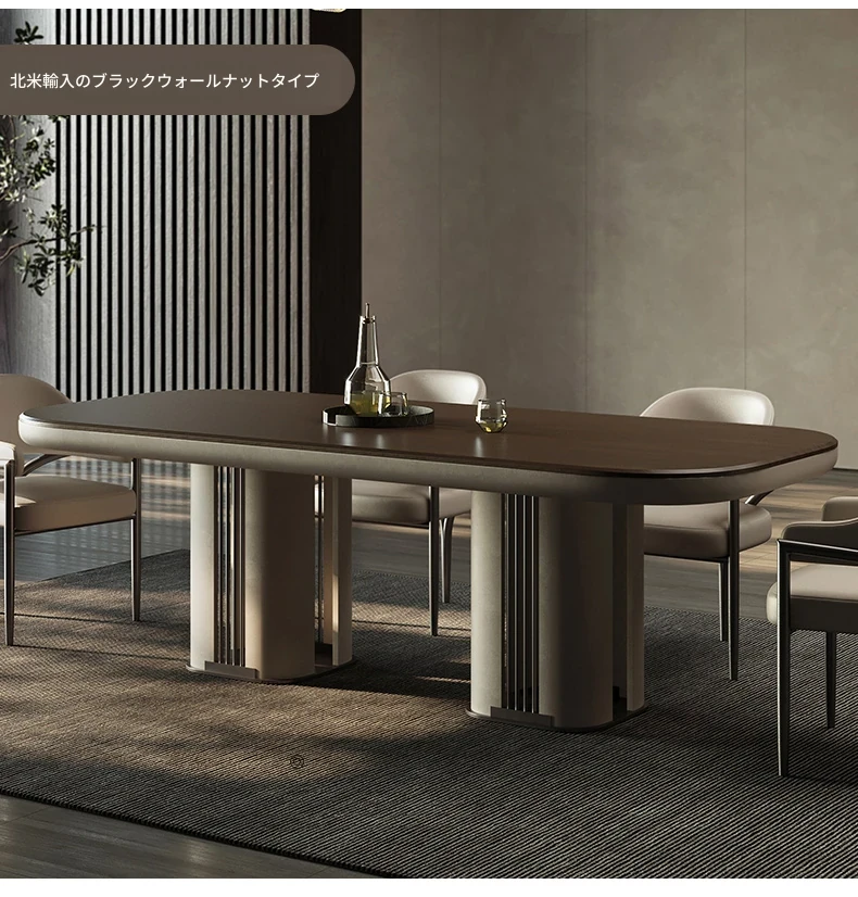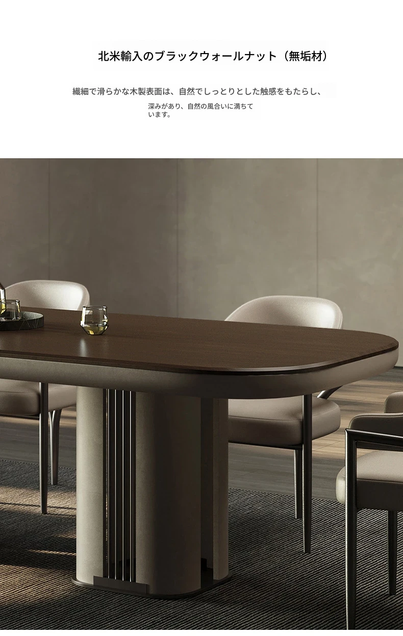 軽やかな贅沢感を楽しむ天然石材のダイニングテーブル&チェアセット!シンプルなデザインで、別荘や家庭の食卓にぴったりの長方形ウォールナット無垢材の食卓。上質なひとときをお届けします。