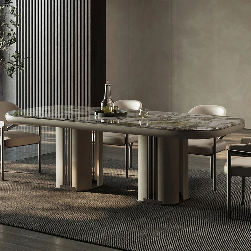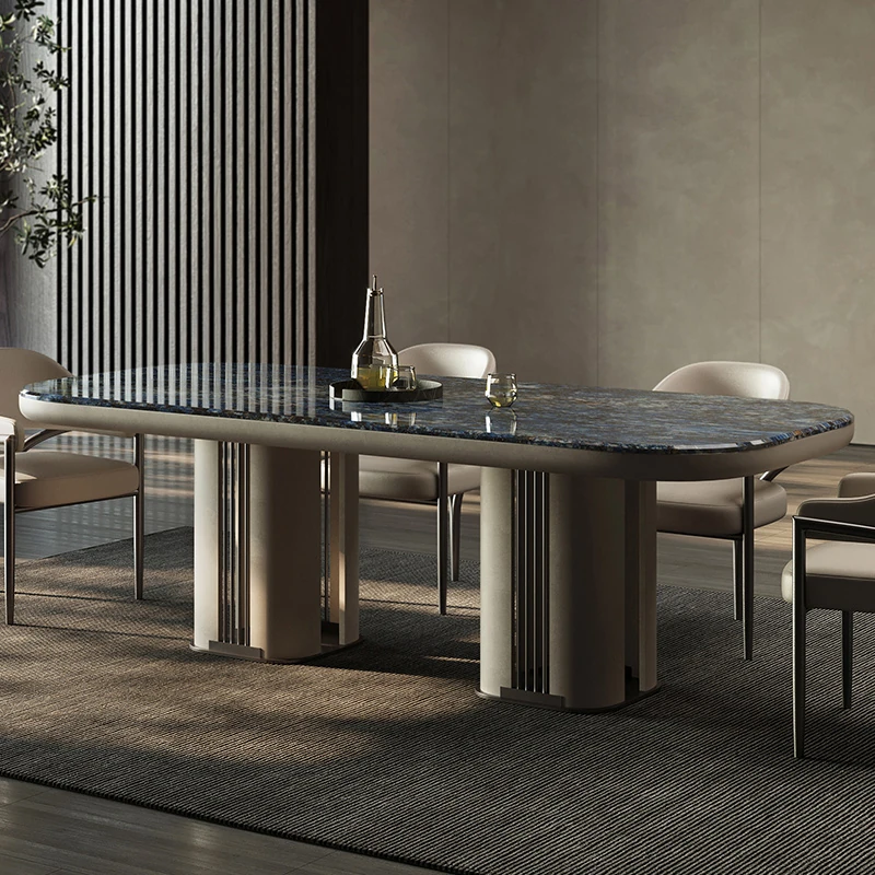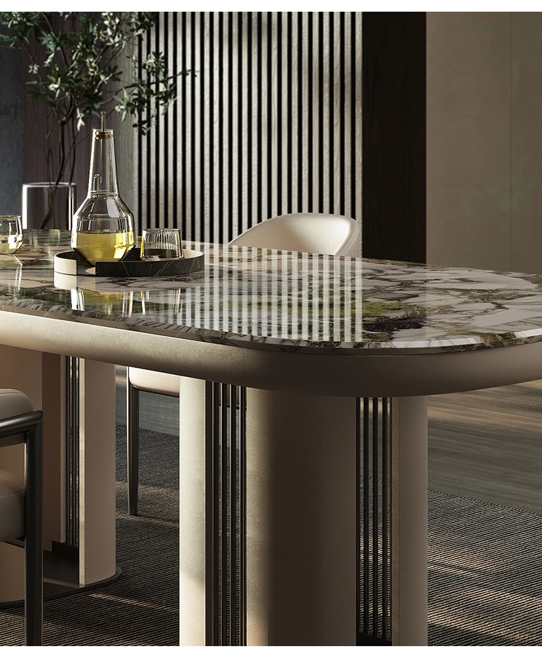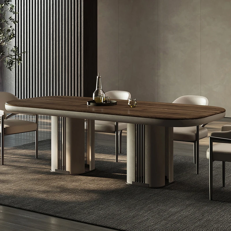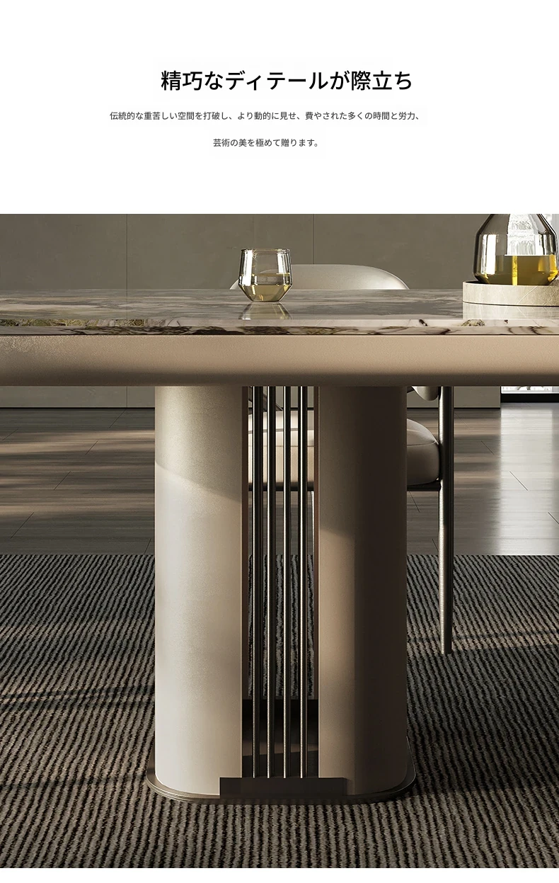 軽やかな贅沢感を楽しむ天然石材のダイニングテーブル&チェアセット!シンプルなデザインで、別荘や家庭の食卓にぴったりの長方形ウォールナット無垢材の食卓。上質なひとときをお届けします。