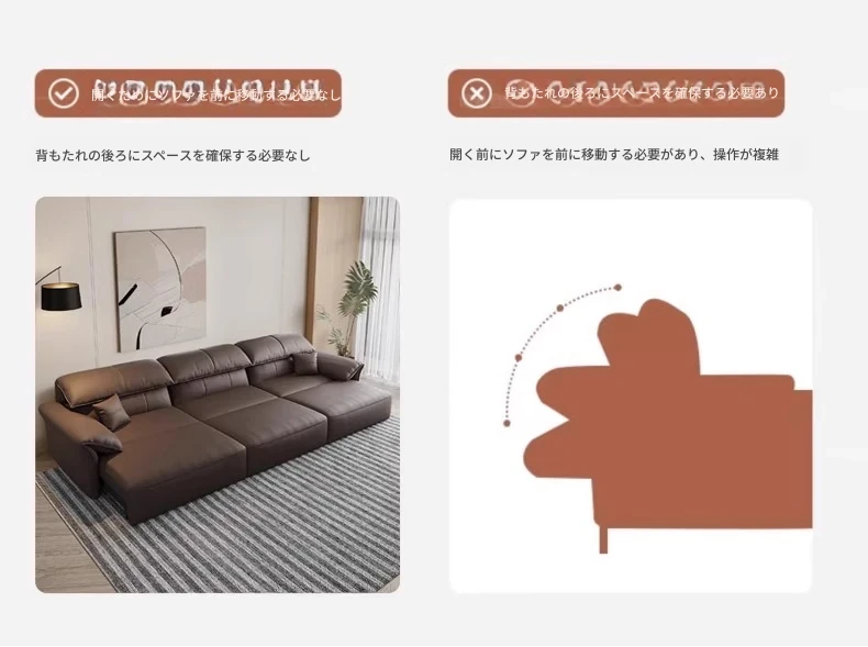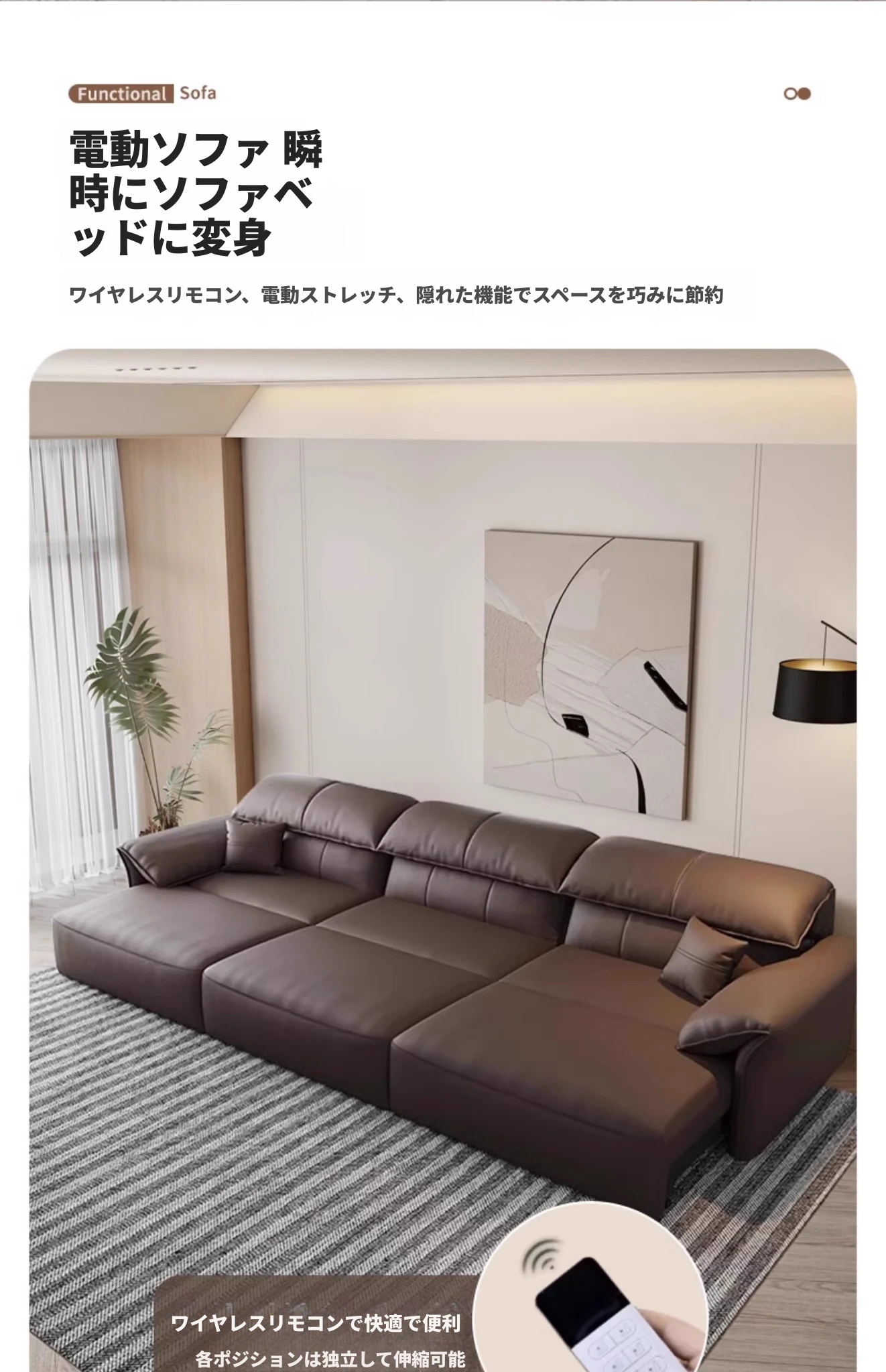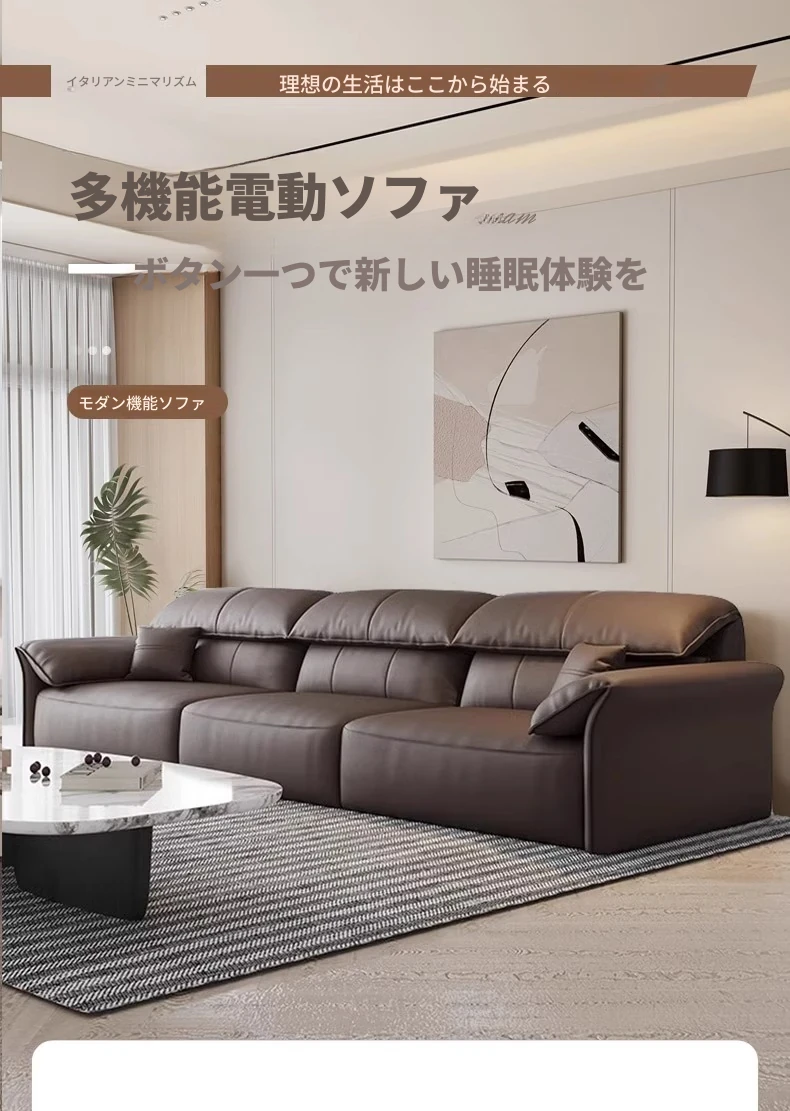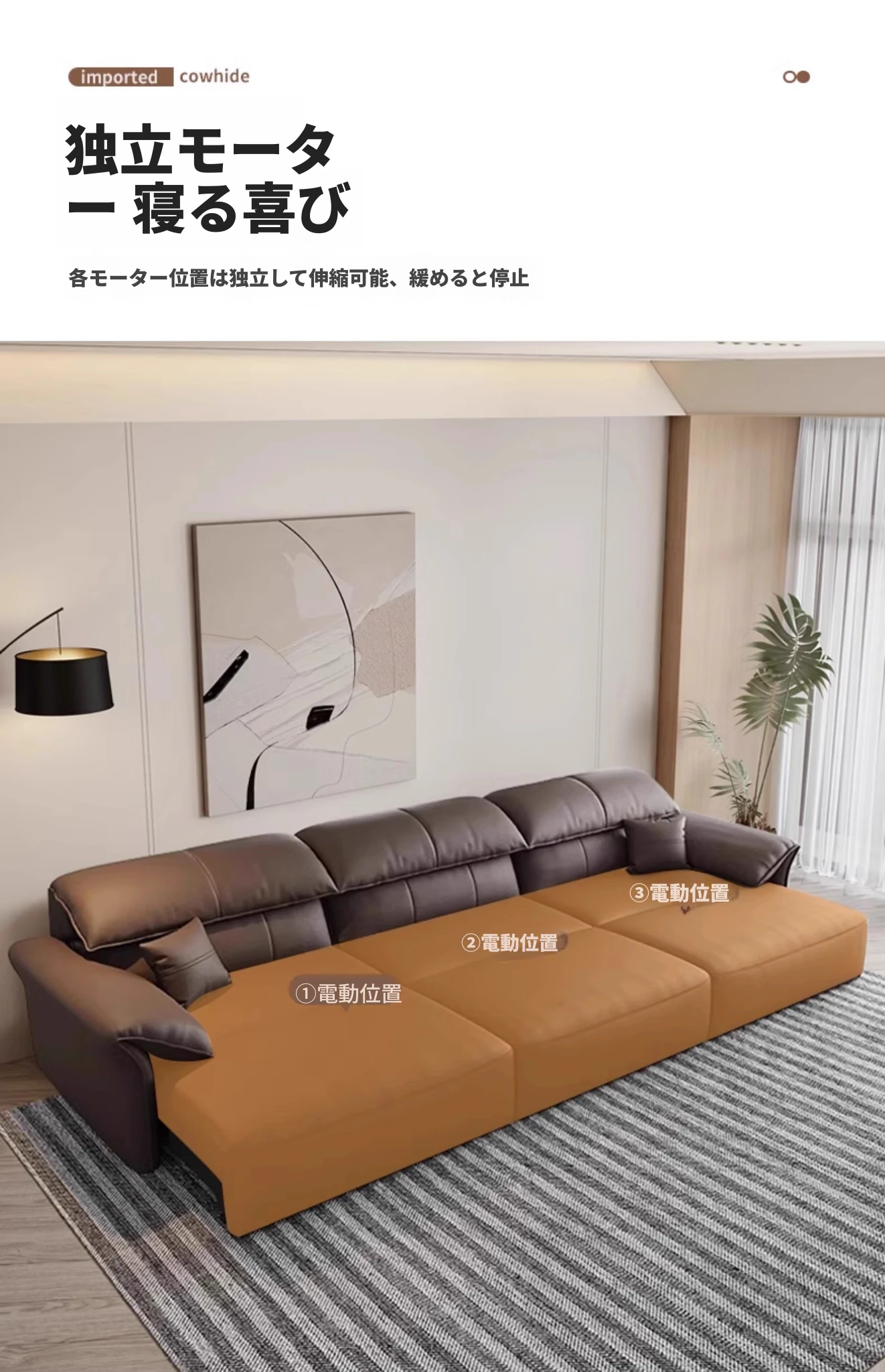 エレガントな象耳デザインの電動レザーソファベッド!伸縮可能で多機能、広々としたリビングルームに最適なイタリアン・ラグジュアリーソファ。快適な寝心地とスタイルを両立した一品です!