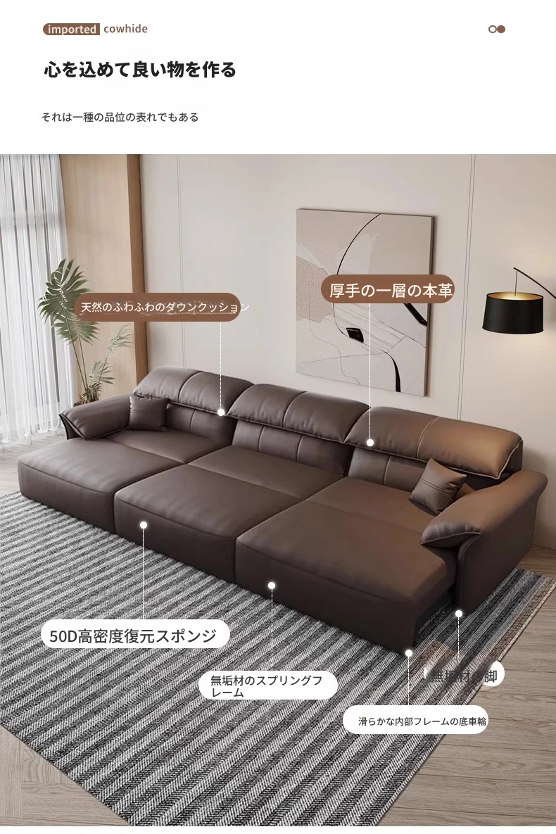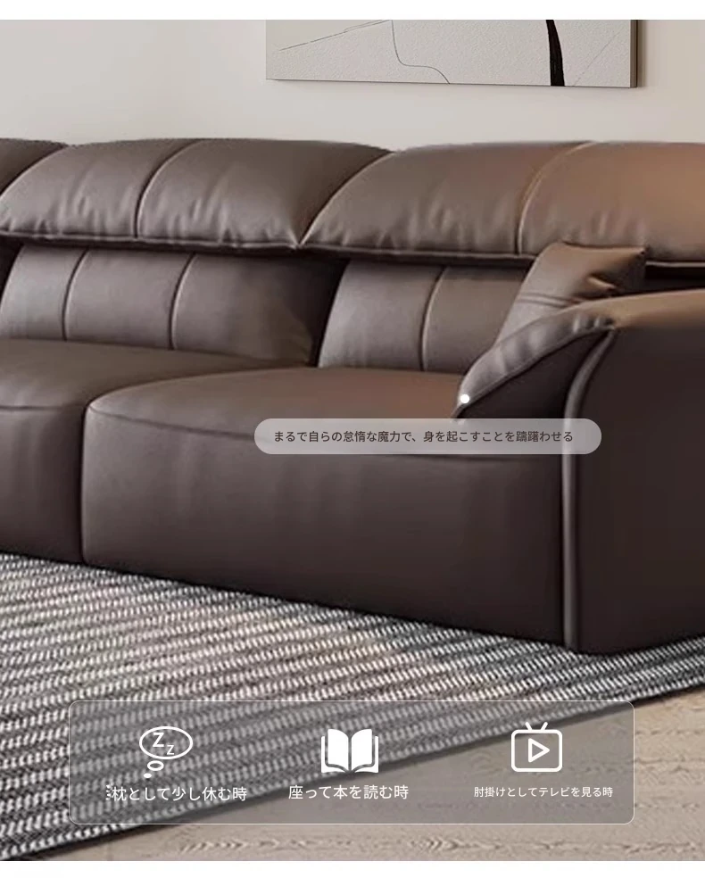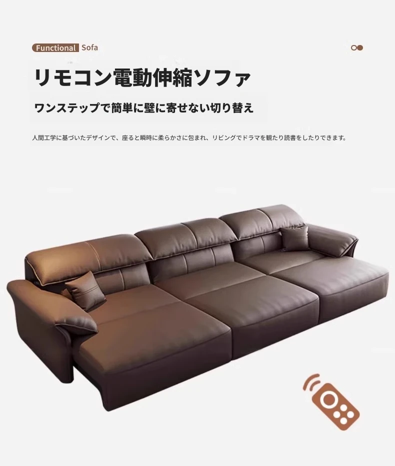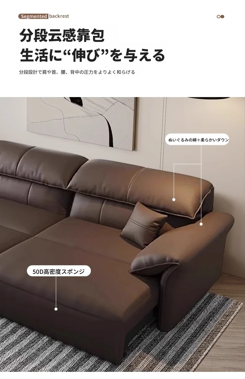 エレガントな象耳デザインの電動レザーソファベッド!伸縮可能で多機能、広々としたリビングルームに最適なイタリアン・ラグジュアリーソファ。快適な寝心地とスタイルを両立した一品です!
