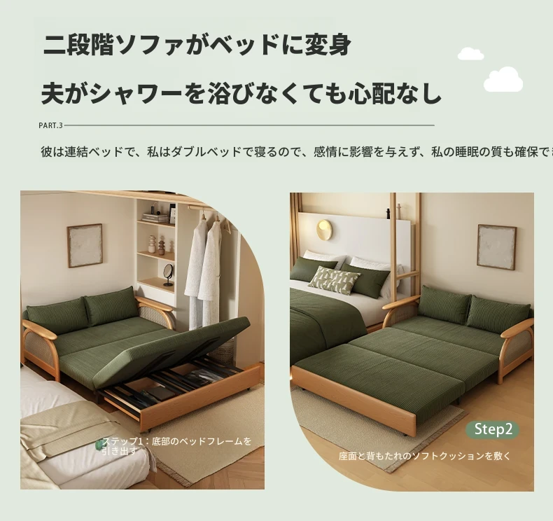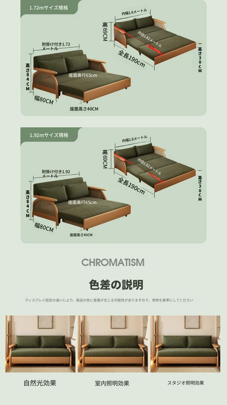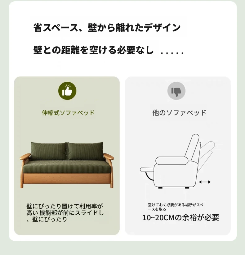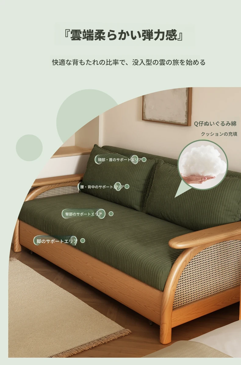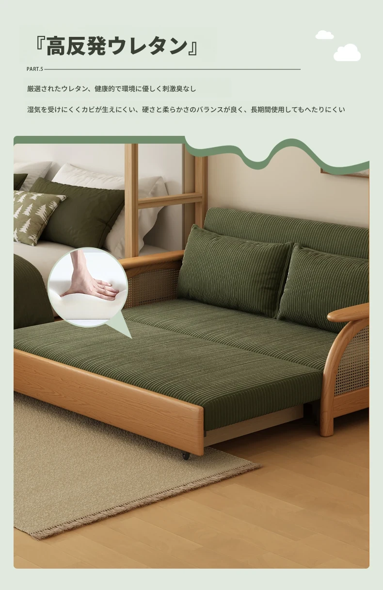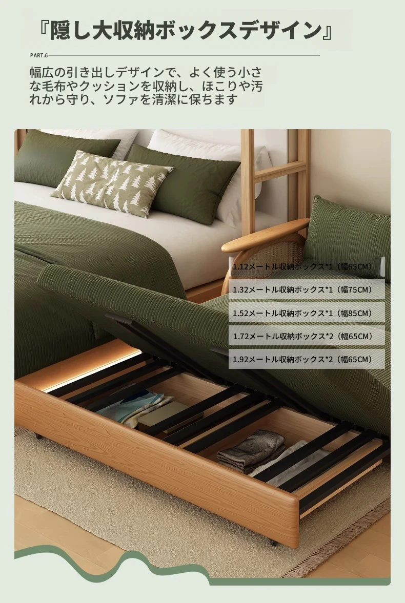 シンプルでスタイリッシュな無垢材風ソファベッド!多機能収納付き、折りたたみ式で省スペースの小型住宅に最適。心地よいコーデュロイ素材の寝室ソファで、快適なリラックスタイムをお楽しみください。