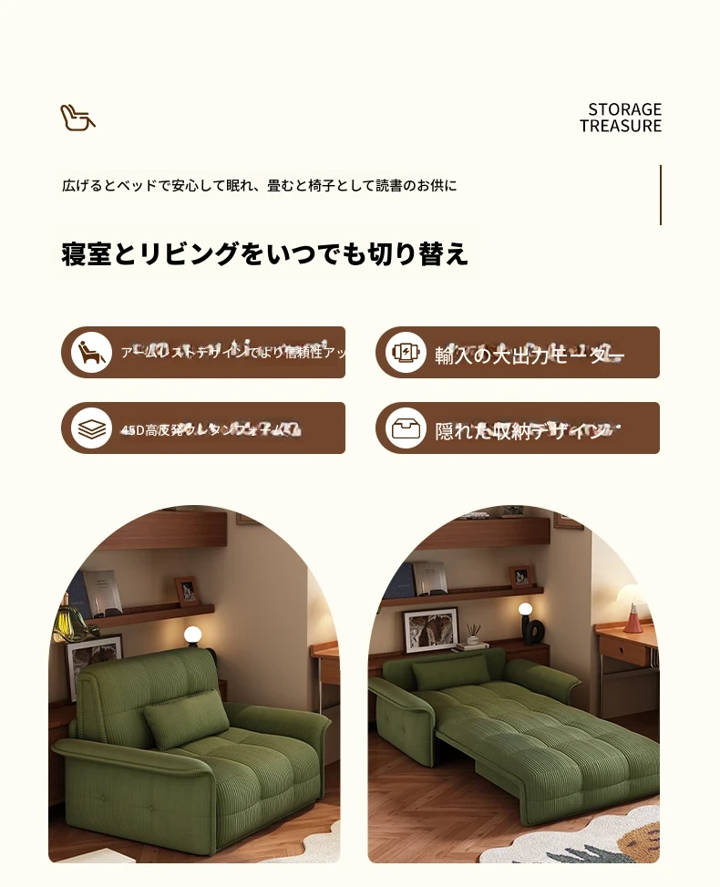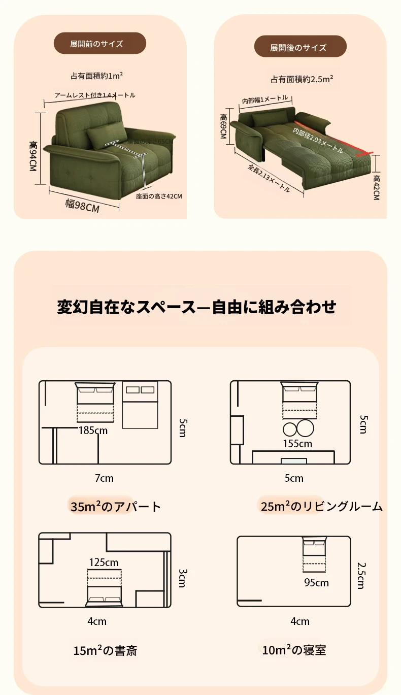 イーシャン 折りたたみ式電動ソファ モダンミニマリスト 多機能 書斎用 2025年新作 一体型 使い勝手抜群!おしゃれな空間を演出。
