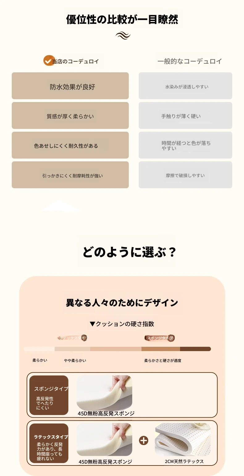 1.9m 天然ラテックスタイプ【コーデュロイ生地】
