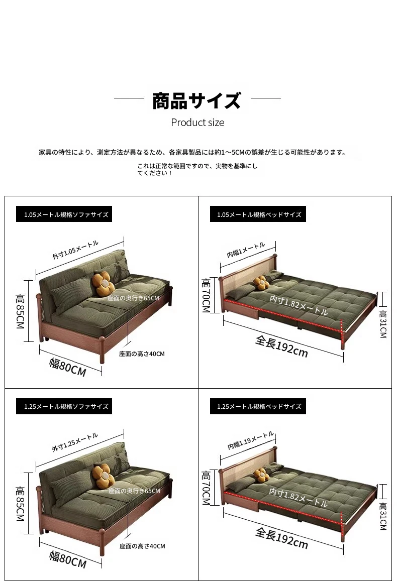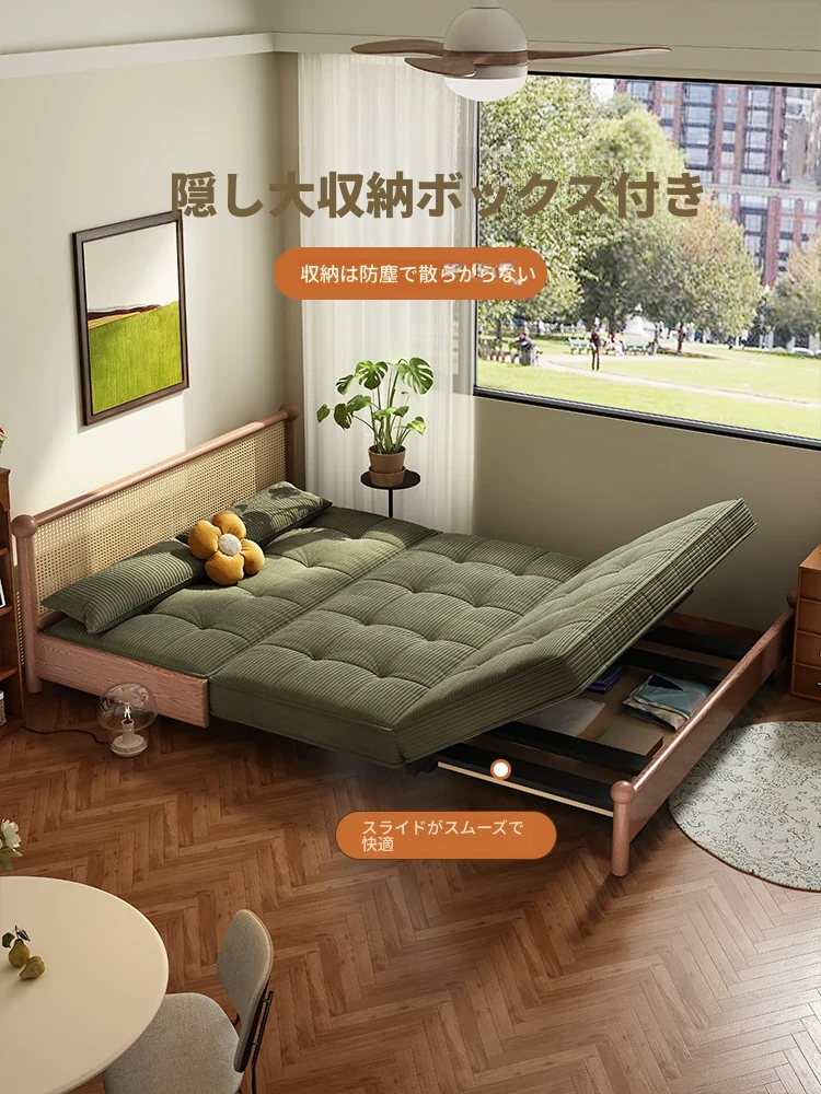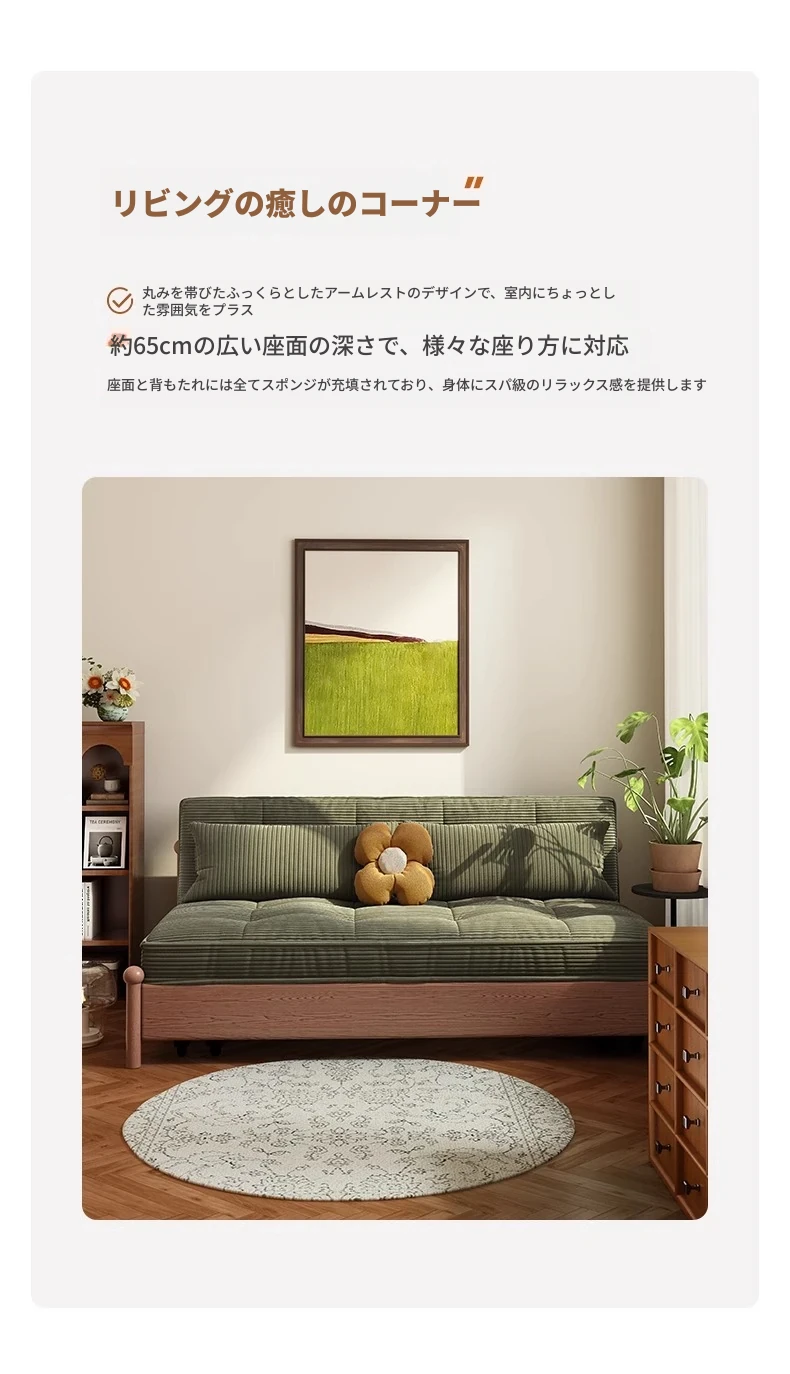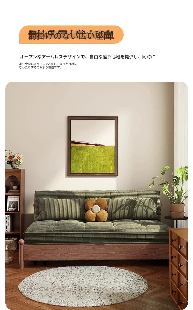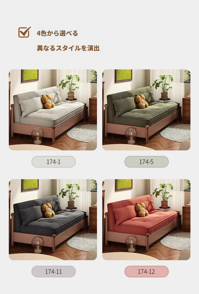 溢升の天然木製ソファベッド - 折りたたみ式の多機能デザイン!小さな部屋にもピッタリなシンプルでスタイリッシュなリビングや書斎に最適な一人用・二人用の伸縮ソファ。快適な座り心地で、スペースを有効活用!