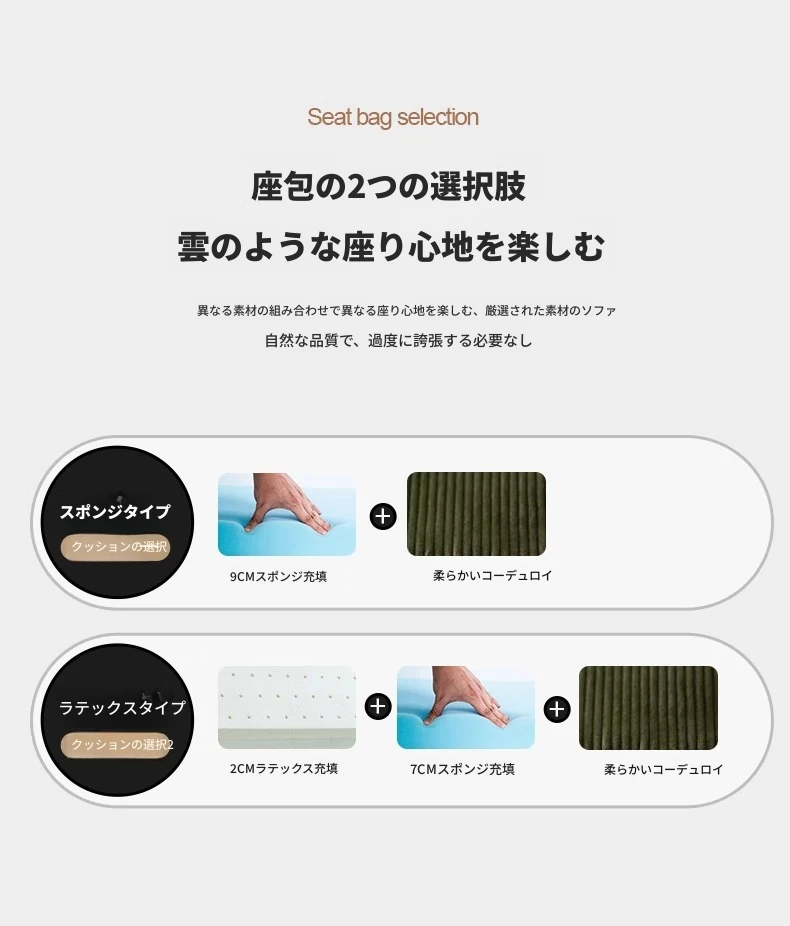 1.85m 天然ラテックスタイプ【コーデュロイ生地】収納なし
