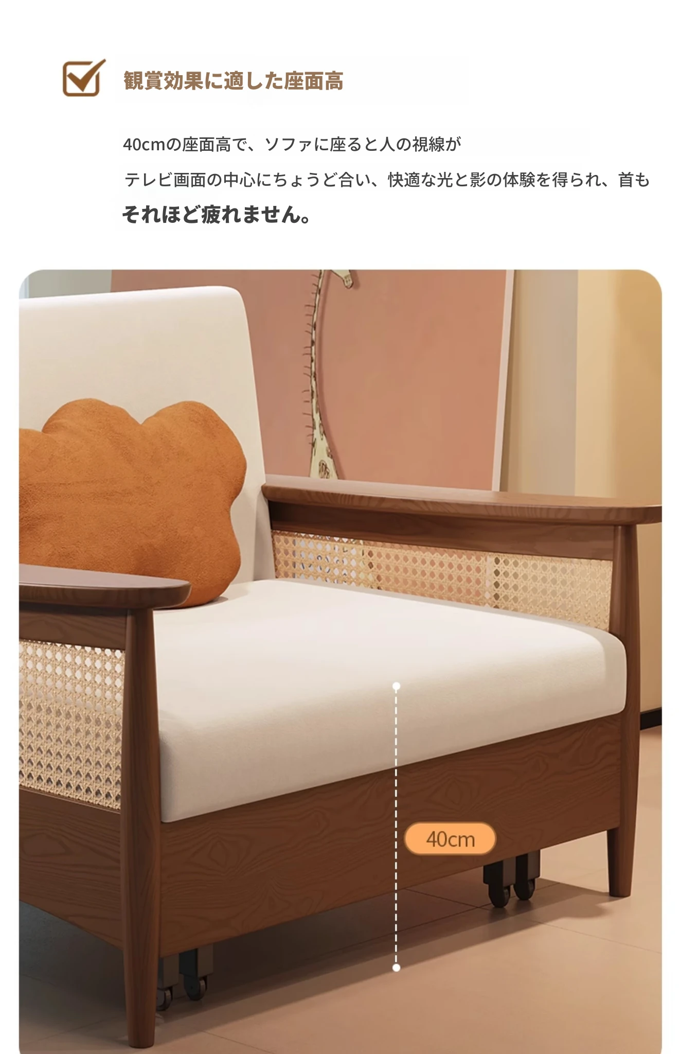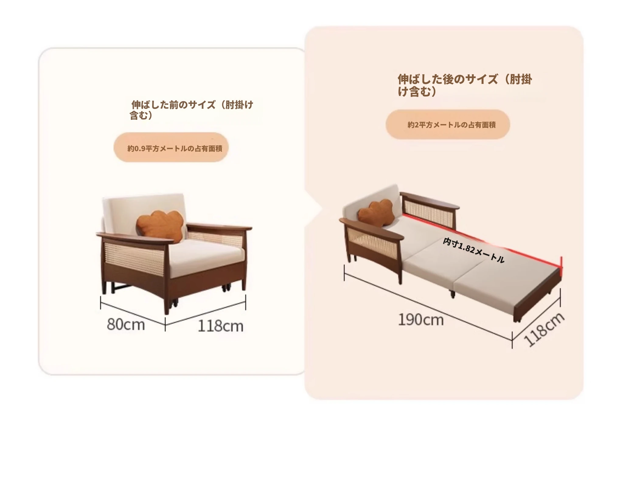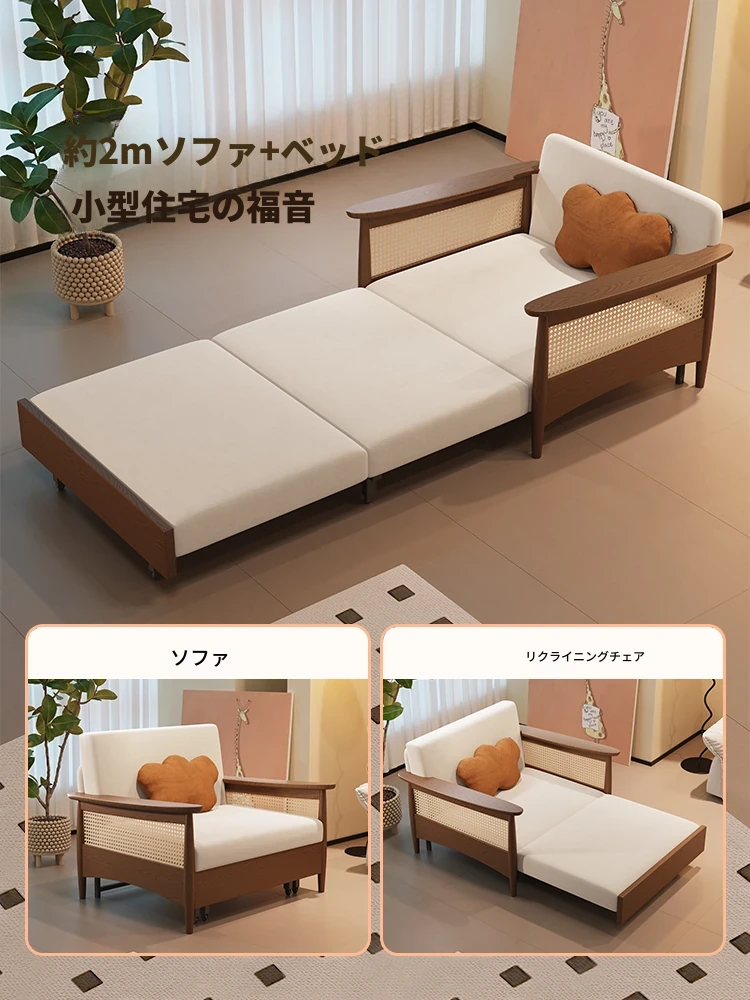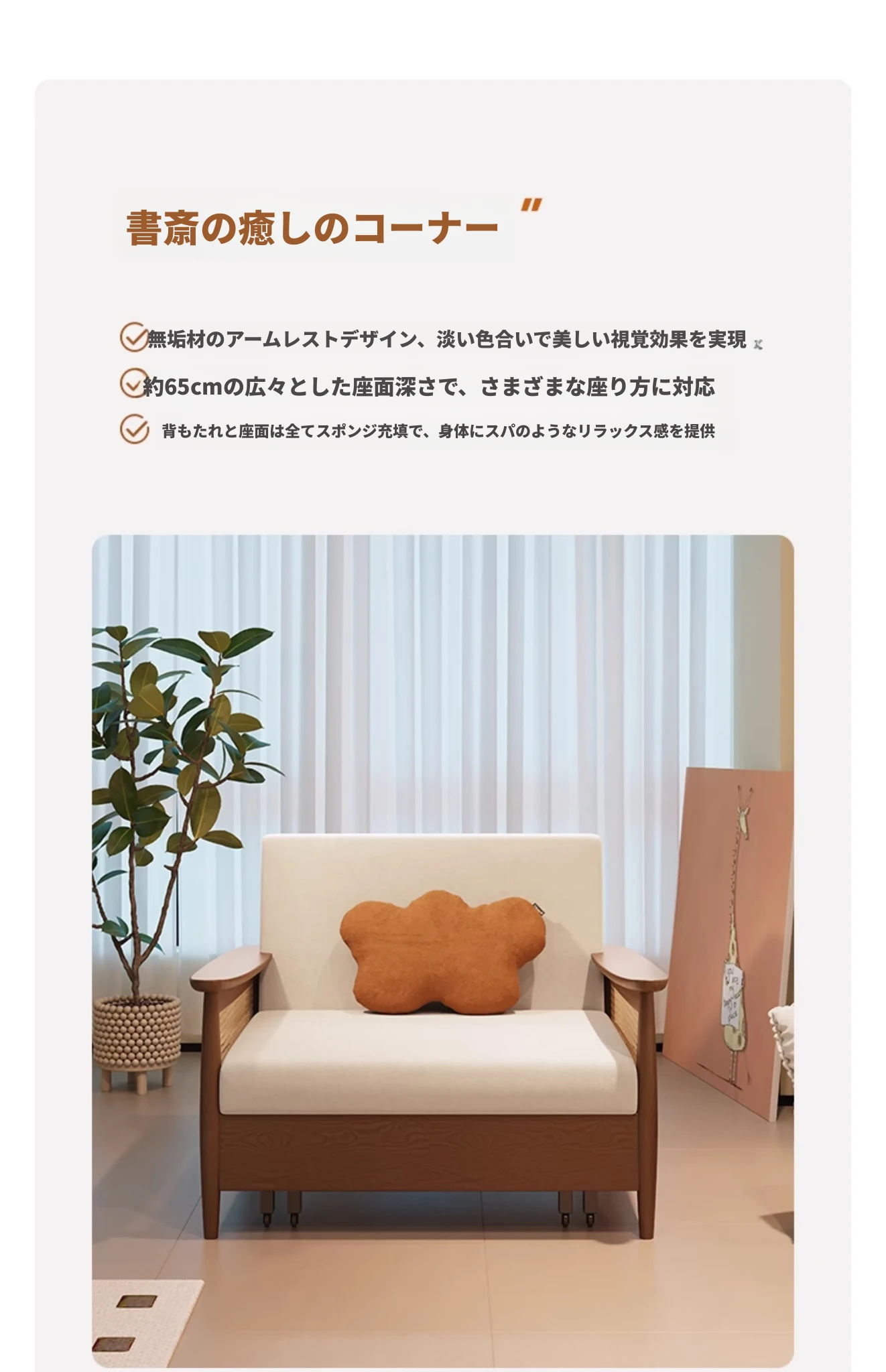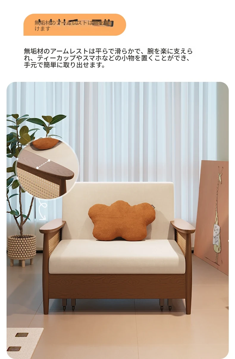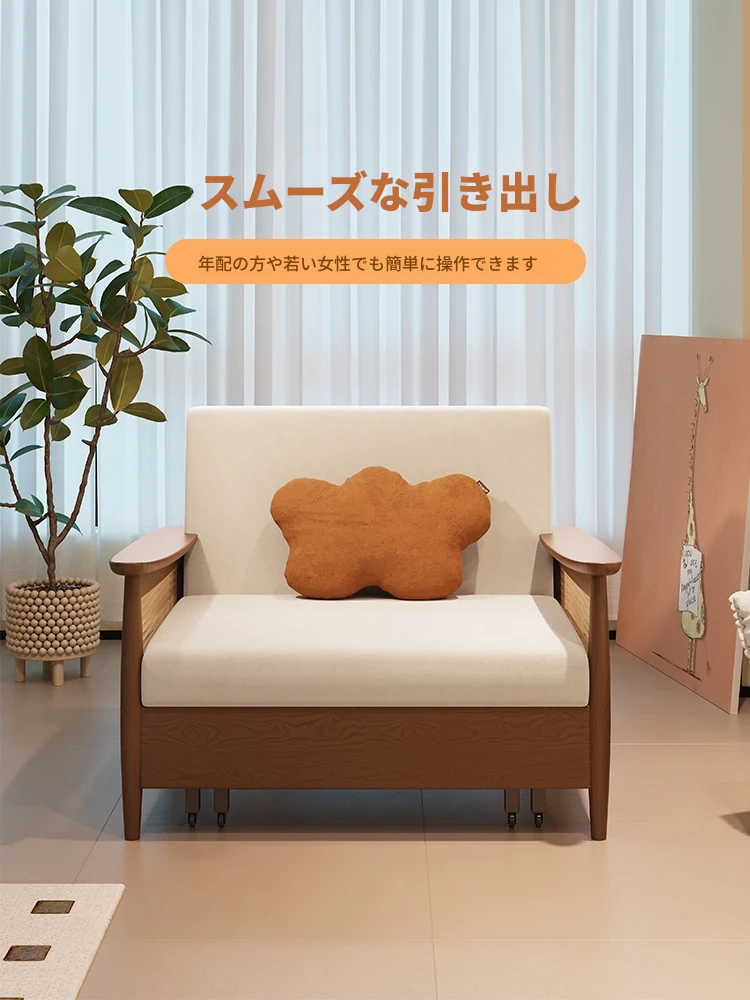 新作!溢升藤格実木ソファベッド - シングルサイズ、折りたたみ可能、書斎や狭いスペースに最適な布製マルチファンクションソファ!快適な居心地とスタイリッシュなデザインで、あなたの空間を彩ります。
