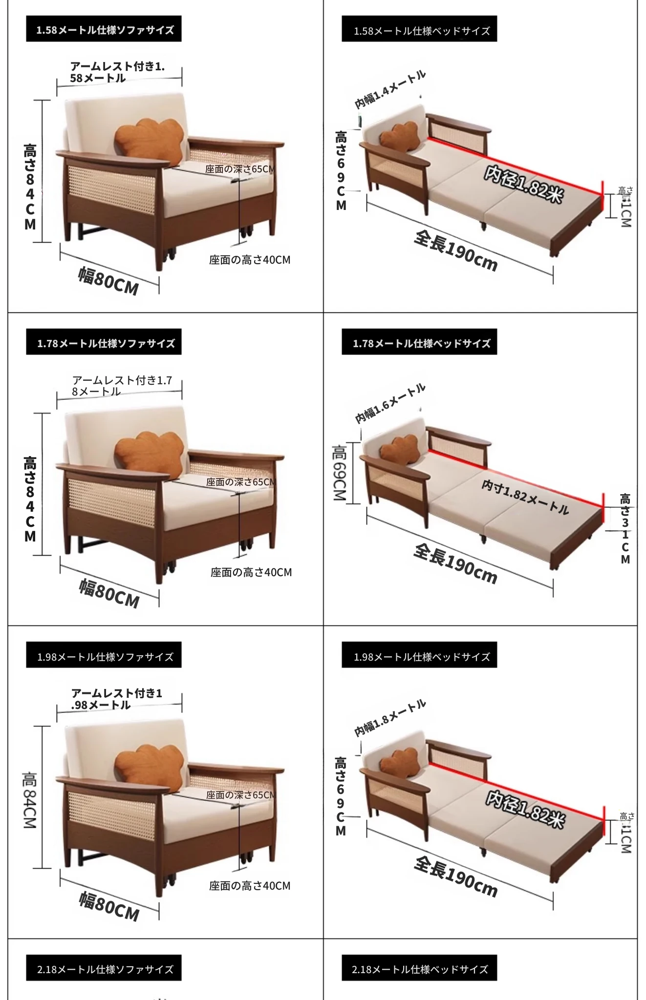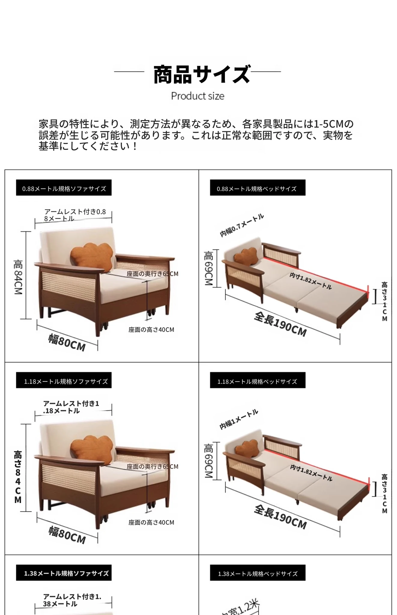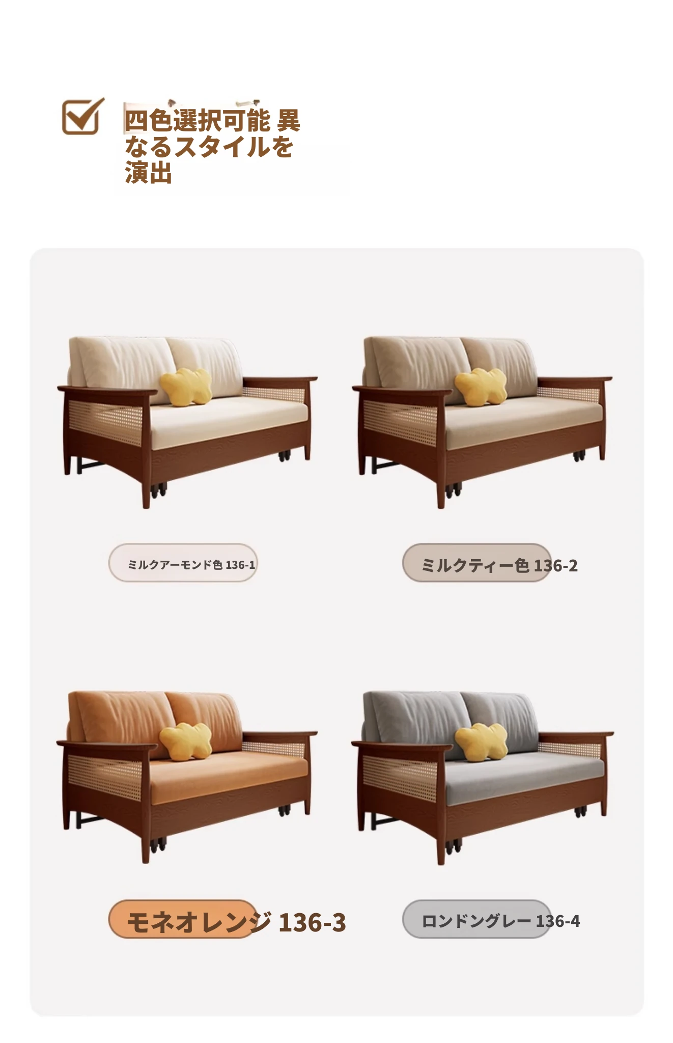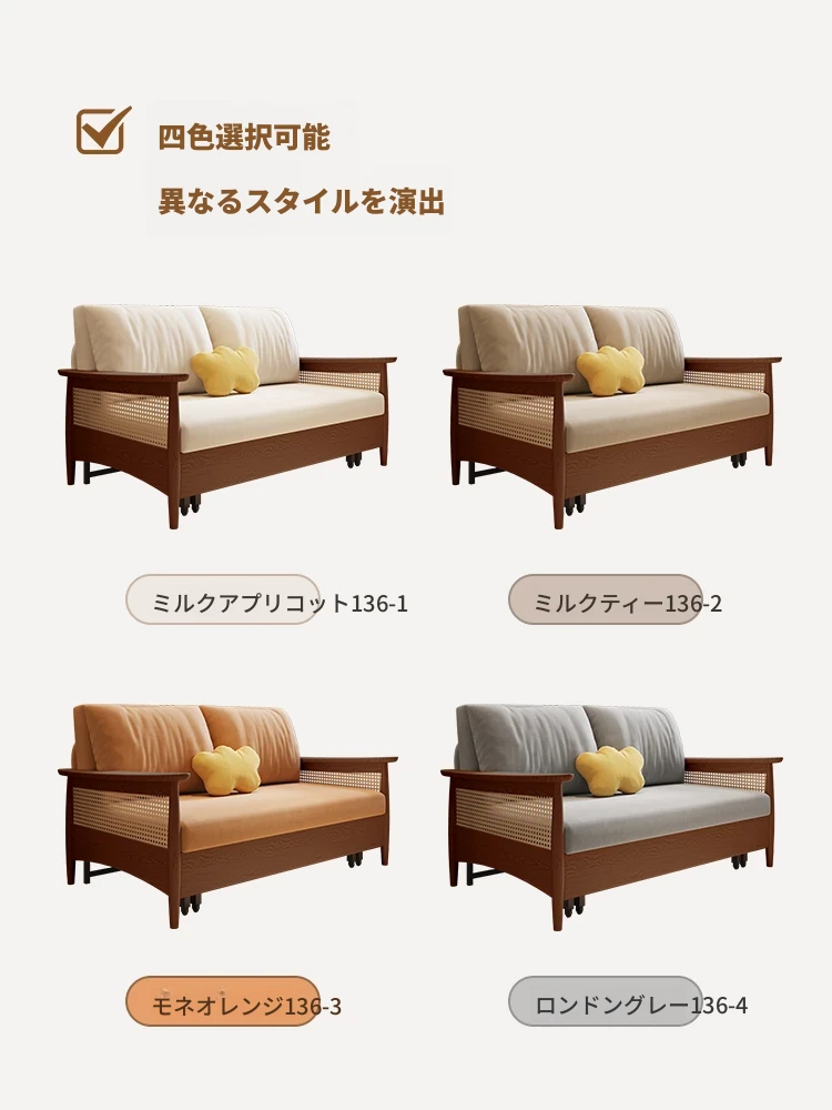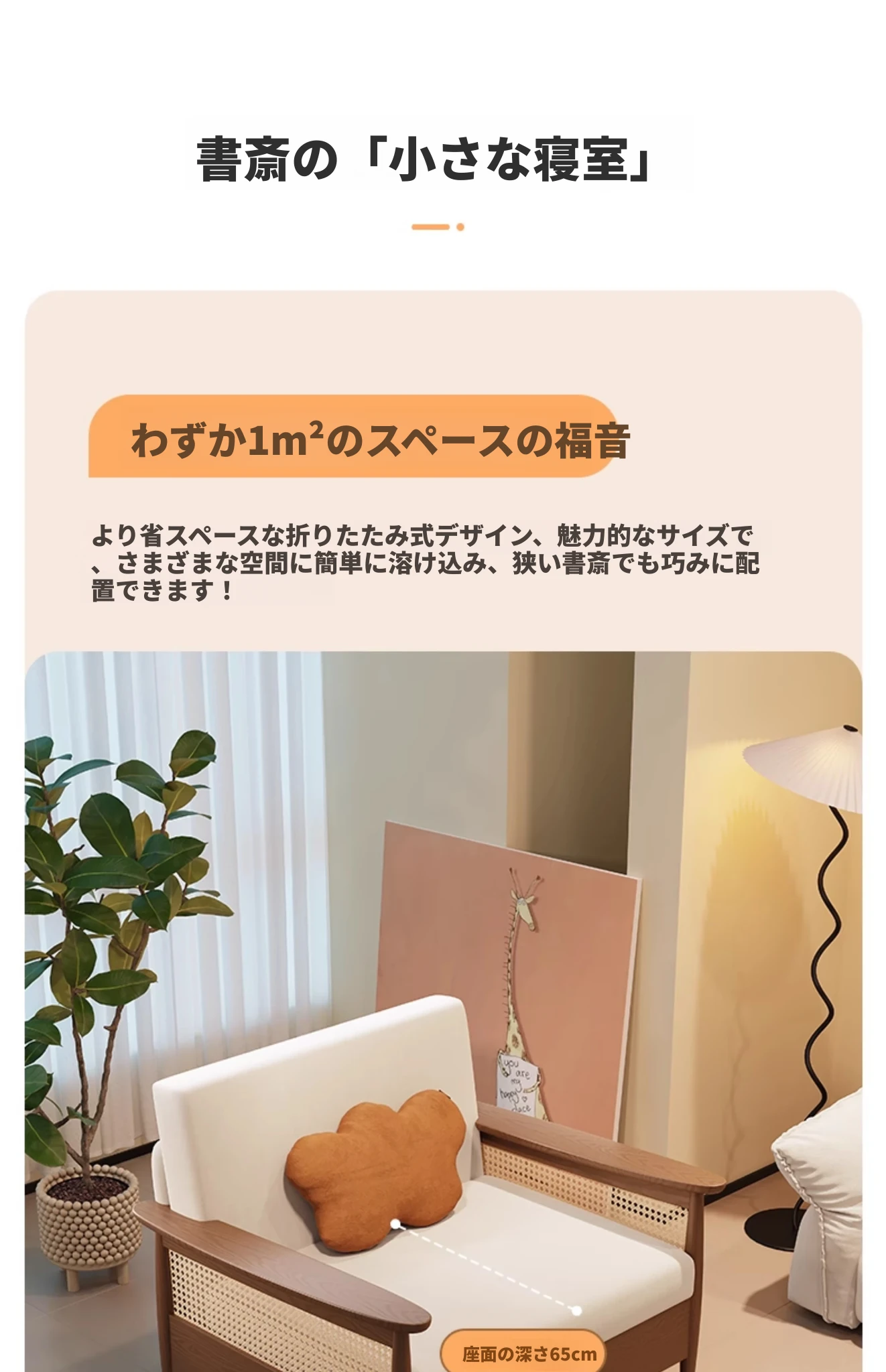 新作!溢升藤格実木ソファベッド - シングルサイズ、折りたたみ可能、書斎や狭いスペースに最適な布製マルチファンクションソファ!快適な居心地とスタイリッシュなデザインで、あなたの空間を彩ります。
