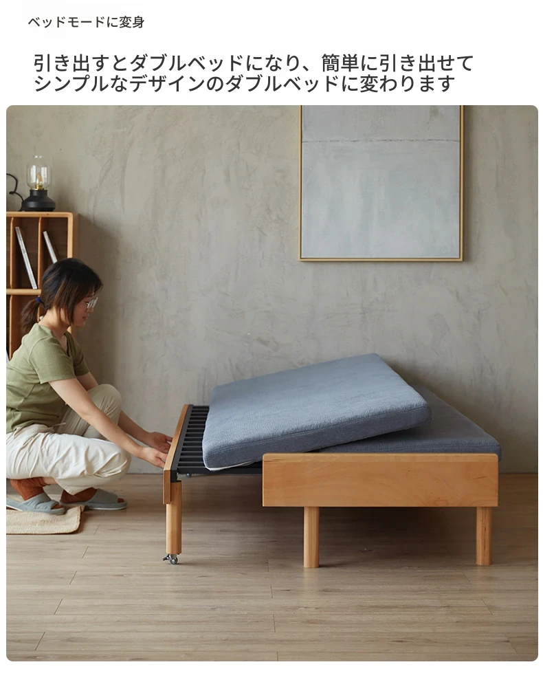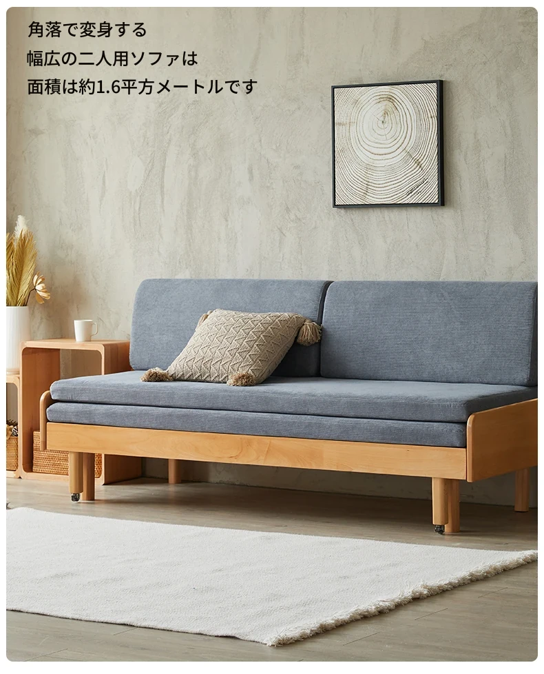 [香港送料無料] スペースを有効活用!伸縮式木製折りたたみソファベッド - 小型リビングに最適な二人用・一人用両用モデル!快適な座り心地と寝心地を実現!