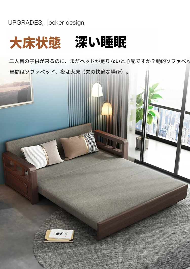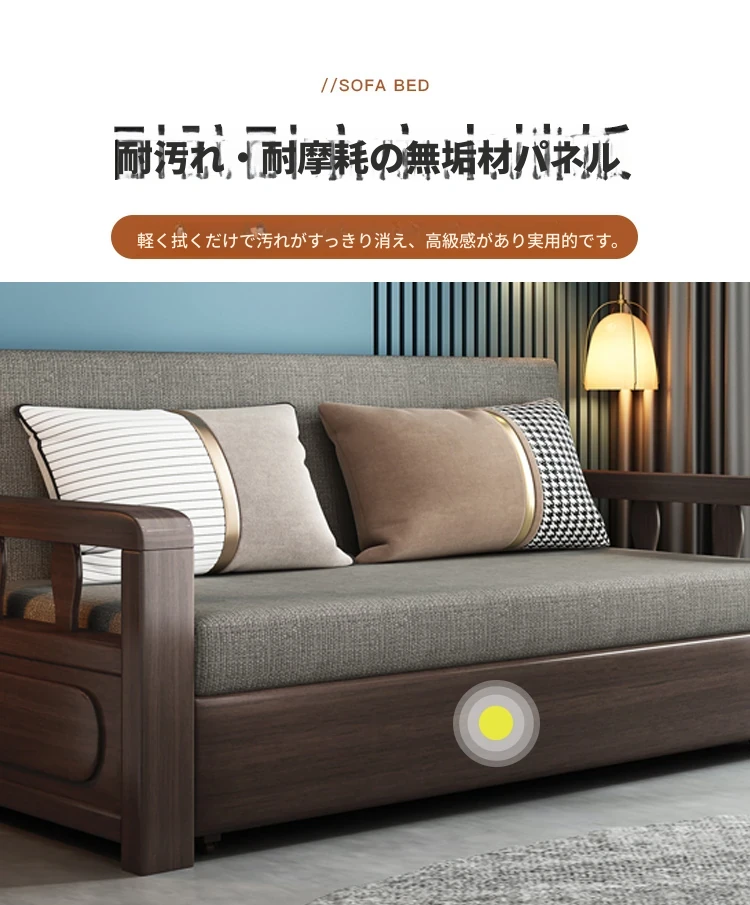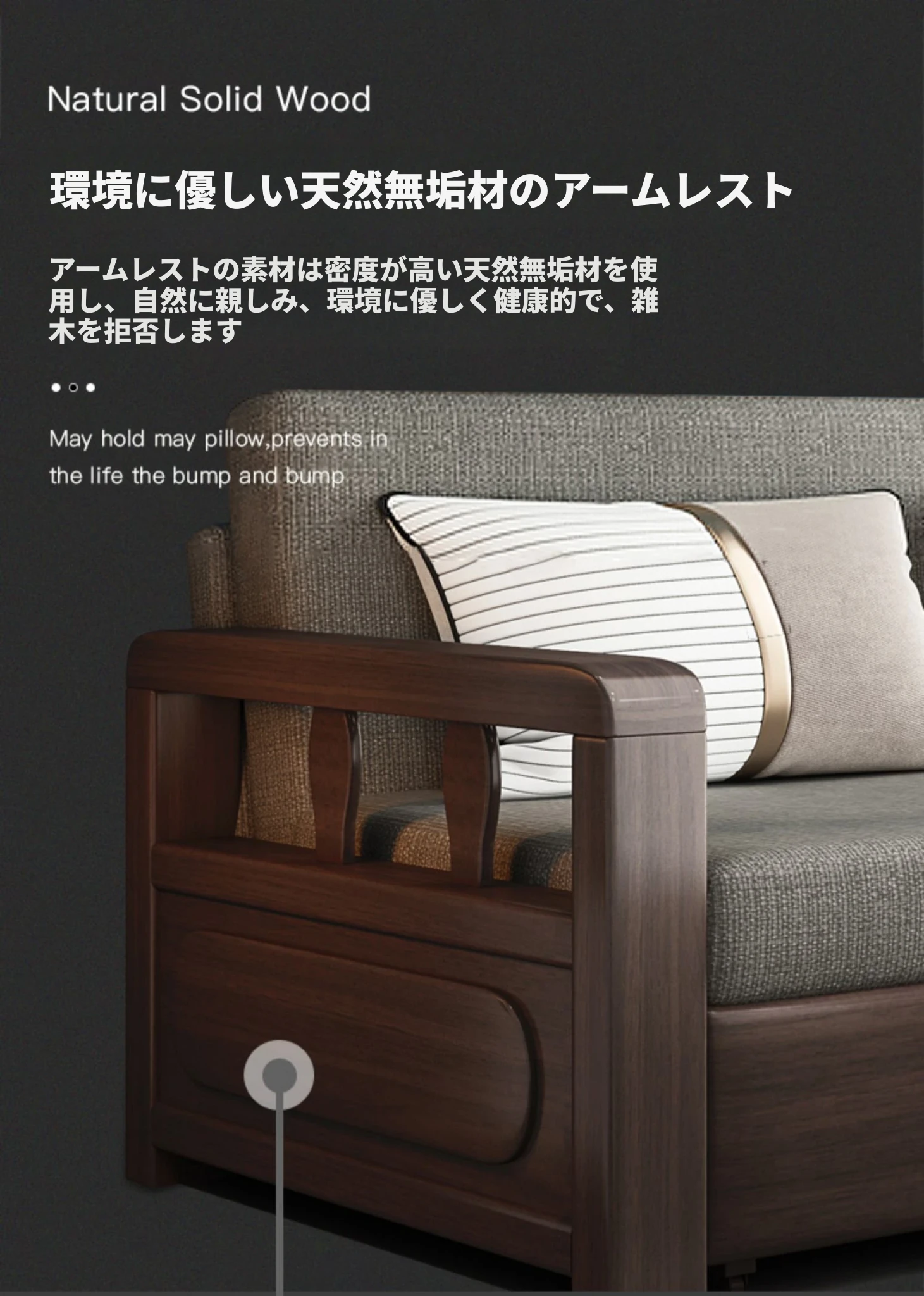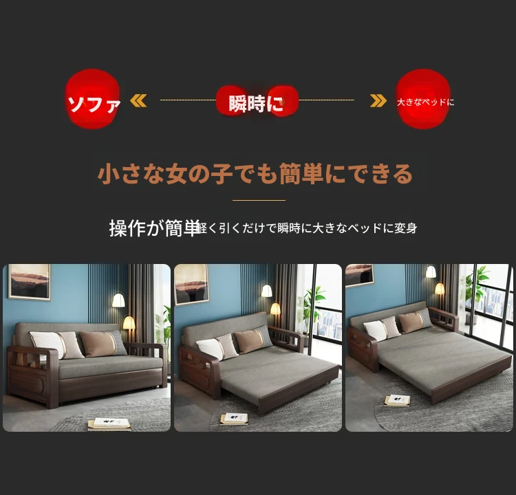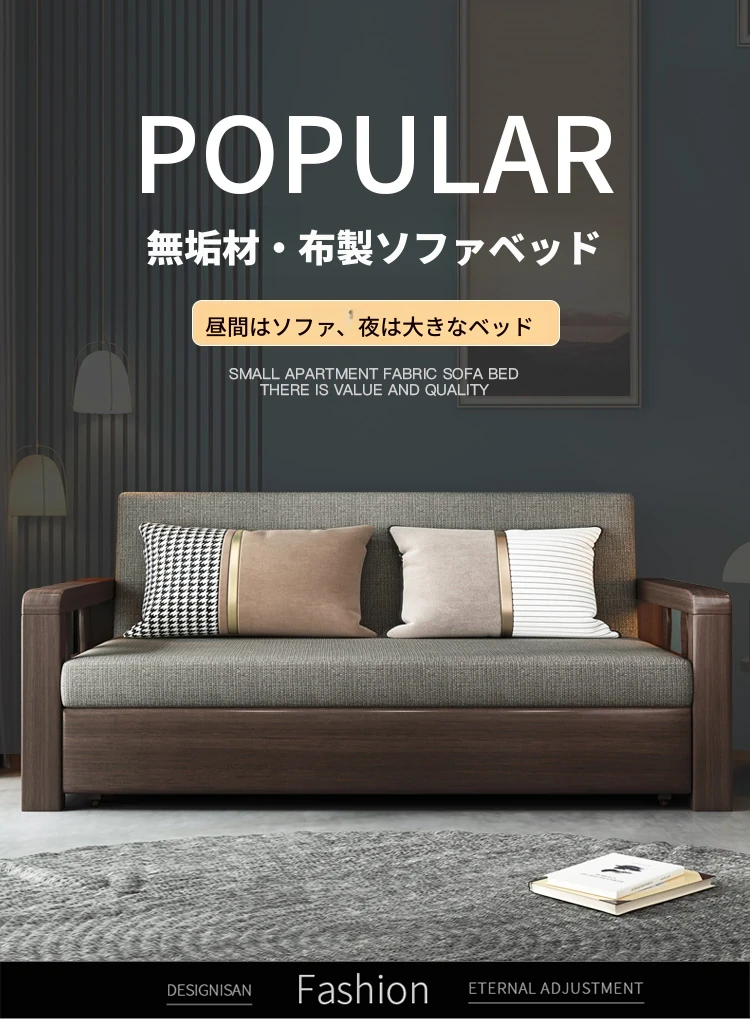【香港送料無料】多機能布製木製ソファーベッド!リビングに最適な折りたたみ式、スライド式デザインで、小スペースでも楽々使用可能。快適な座り心地と寝心地を両立した理想の一品!