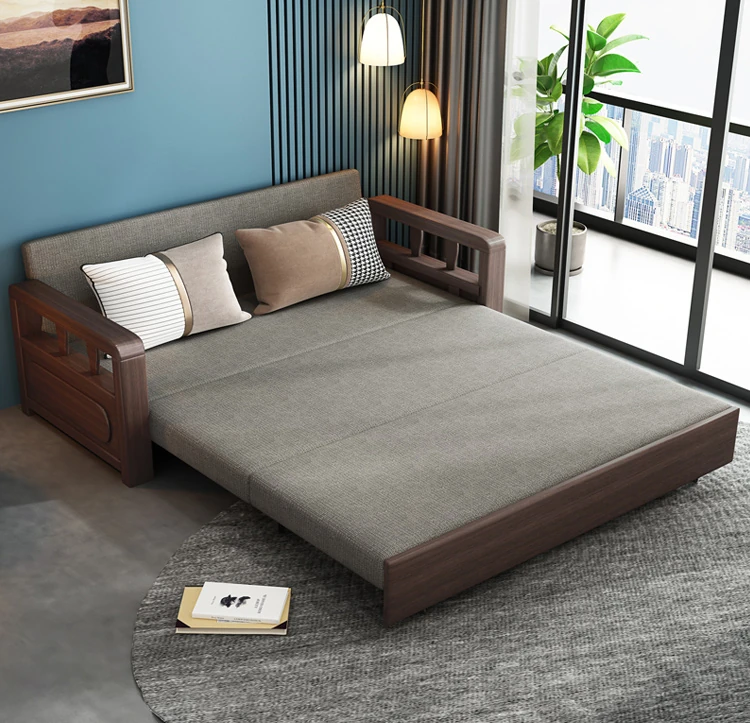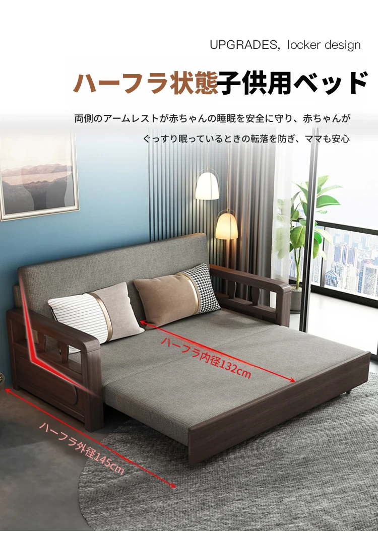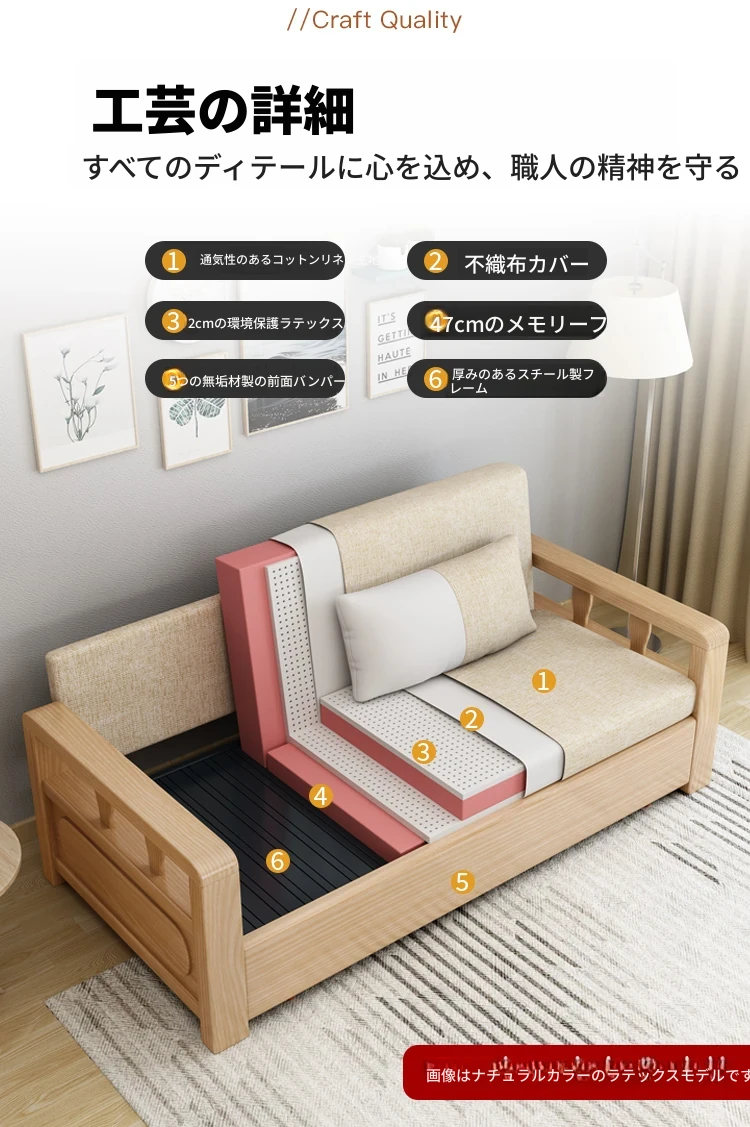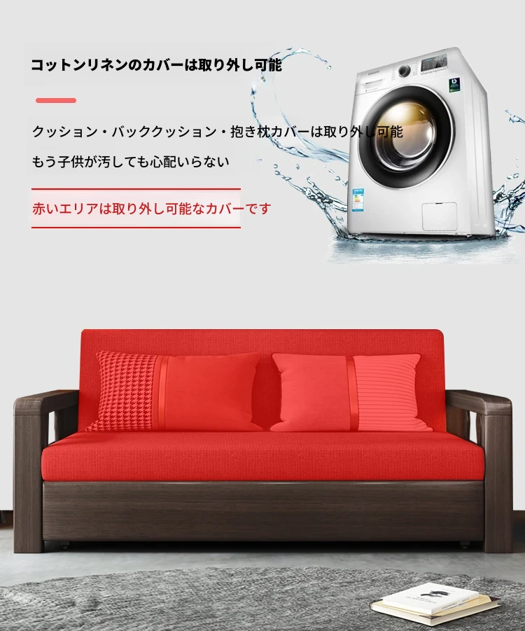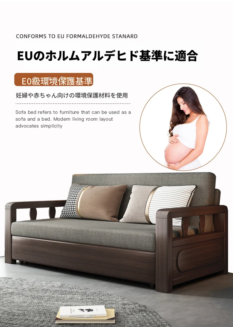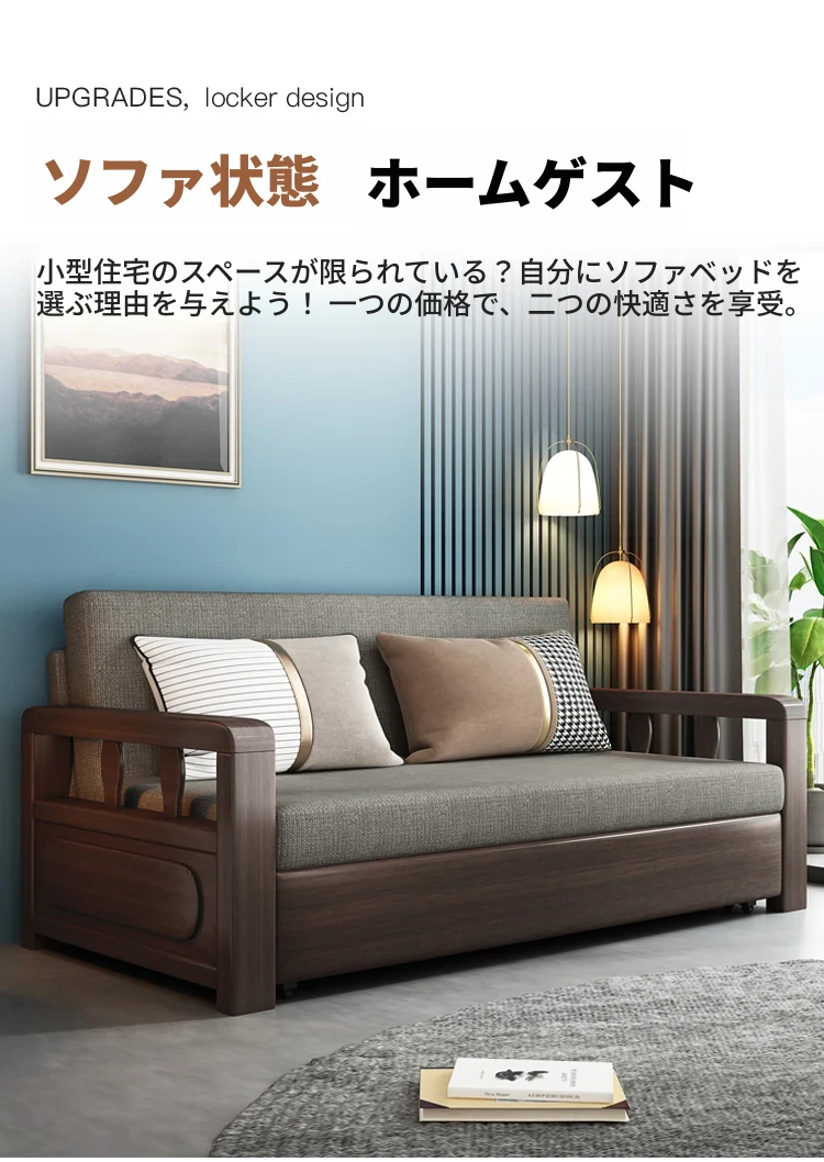 【香港送料無料】多機能布製木製ソファーベッド!リビングに最適な折りたたみ式、スライド式デザインで、小スペースでも楽々使用可能。快適な座り心地と寝心地を両立した理想の一品!