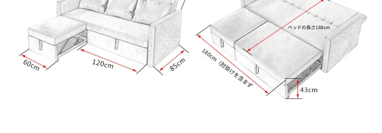 【香港送料無料】スペース節約!折りたたみソファベッド 二人掛け・寝床兼用 便利なチェンジ機能付き!おしゃれで機能的な小型家具。