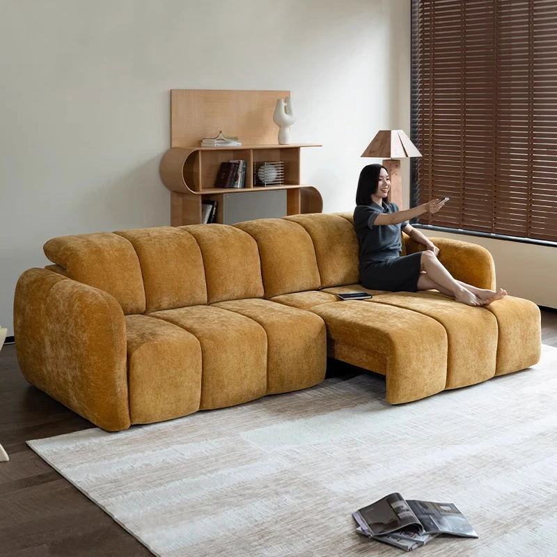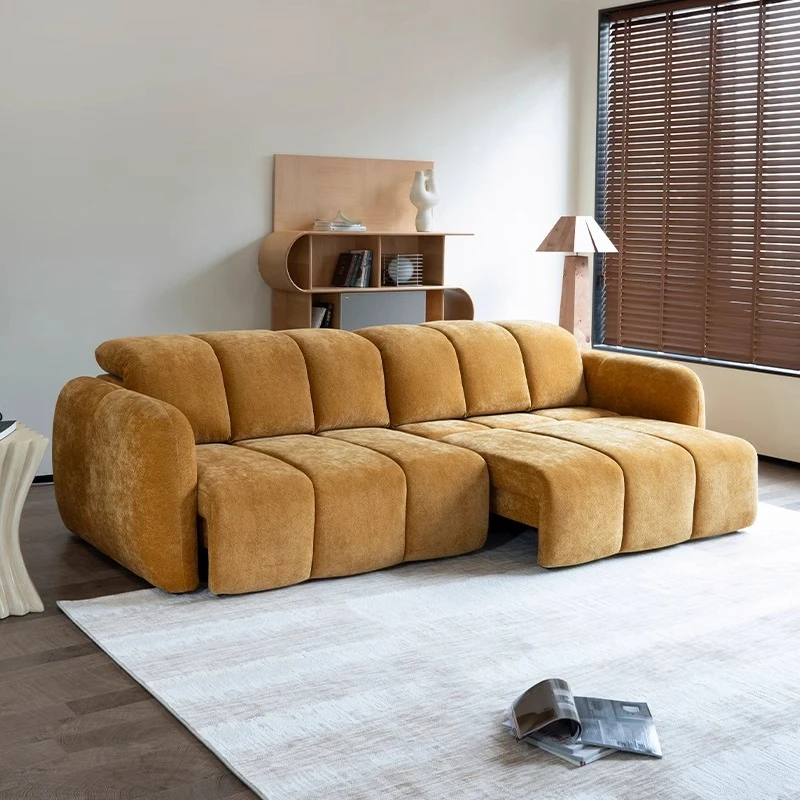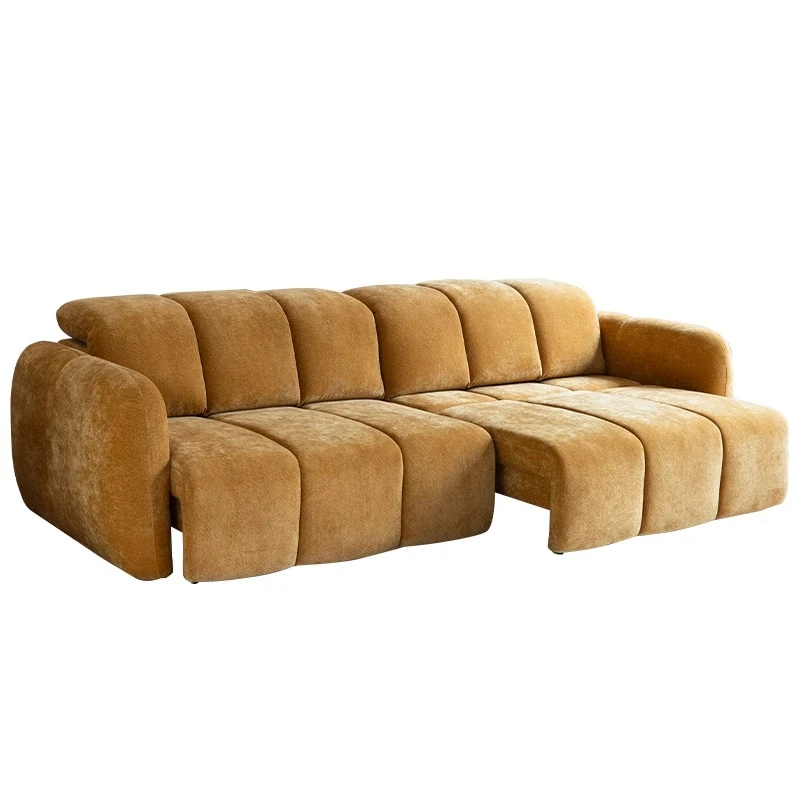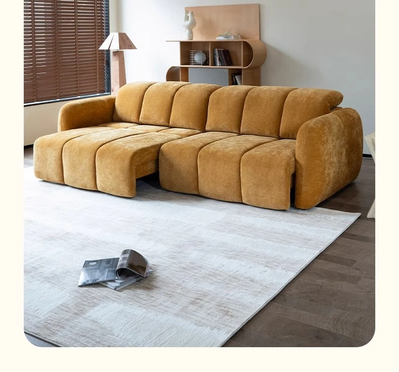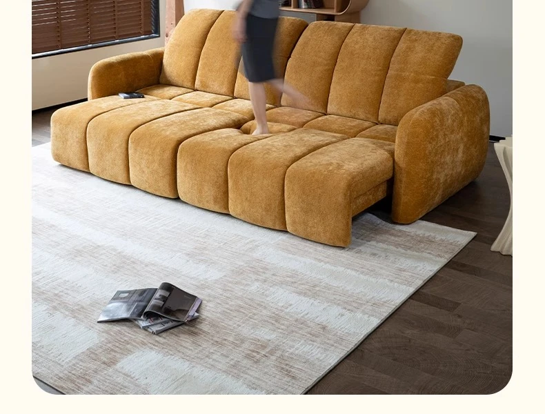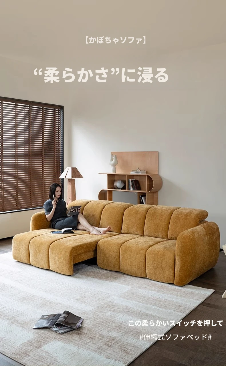 壁を必要としない電動機能付きソファベッド!フレンチアンティークスタイルの小型リビングにぴったりな3人掛けシェニールファブリックソファ。快適な眠りとおしゃれな空間をお届けします!
