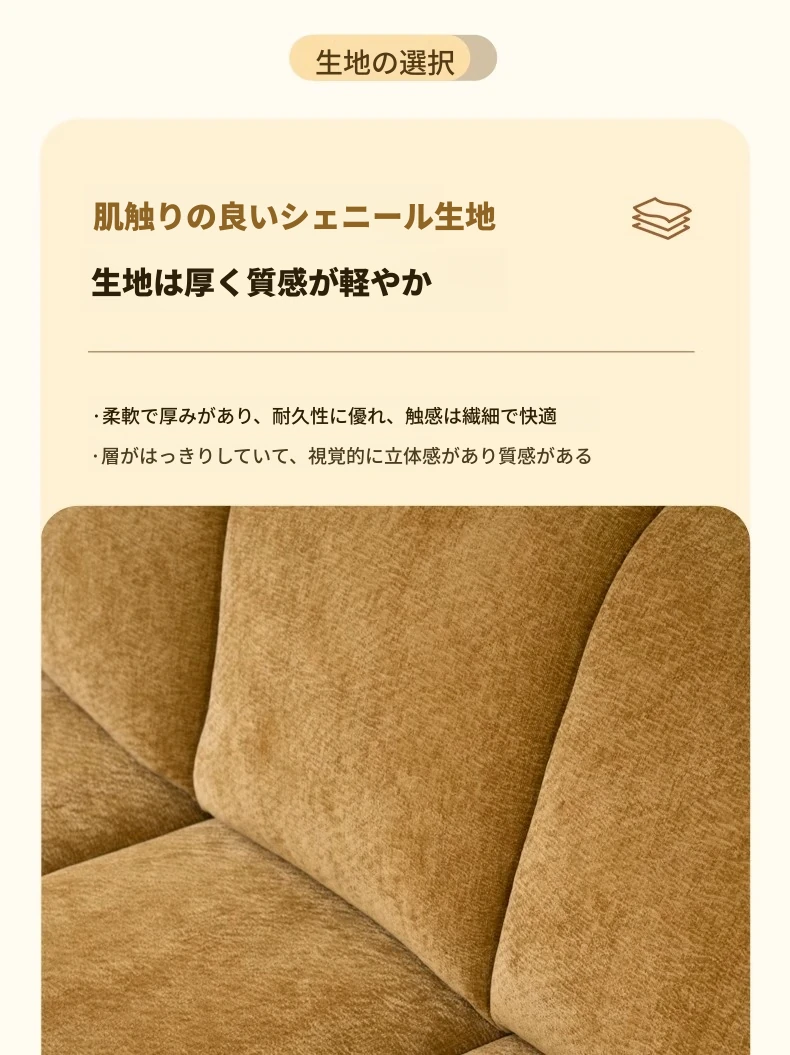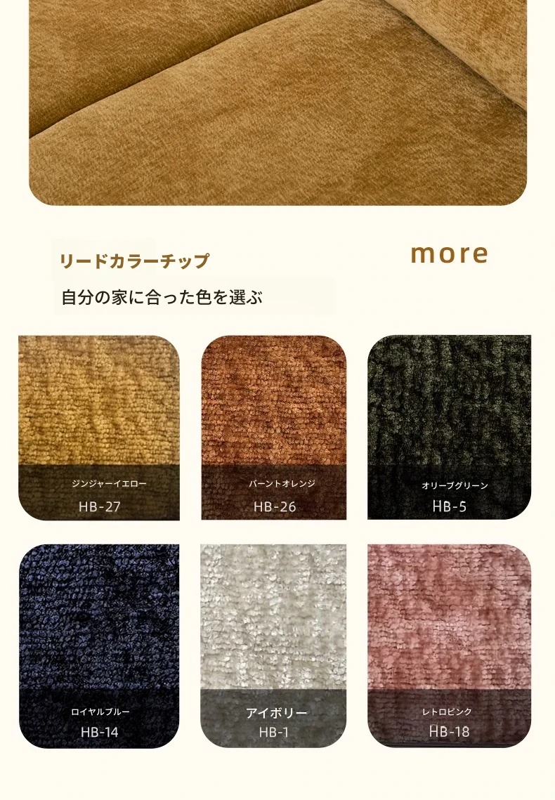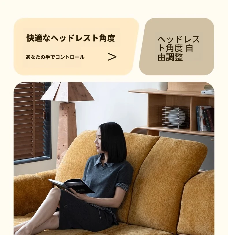 【肌触りの良いシェニール生地 + 5段階調整のヘッドレスト】