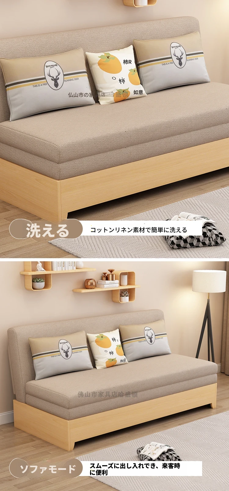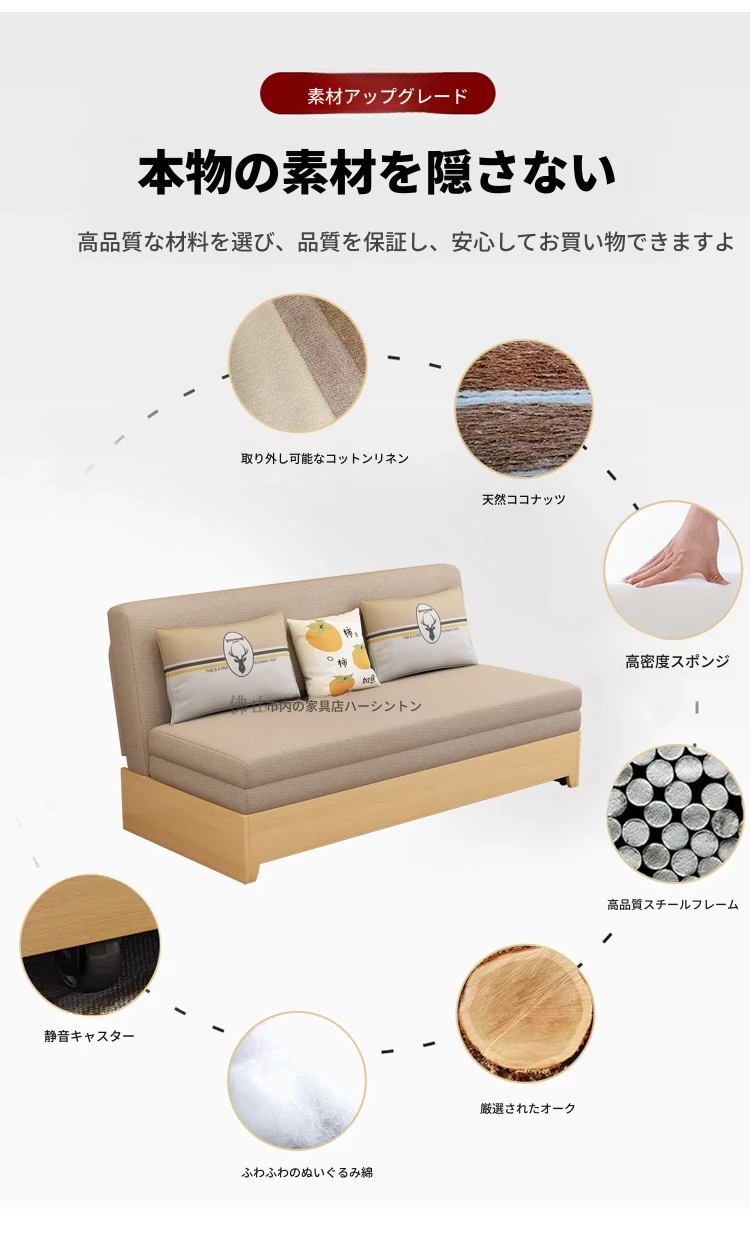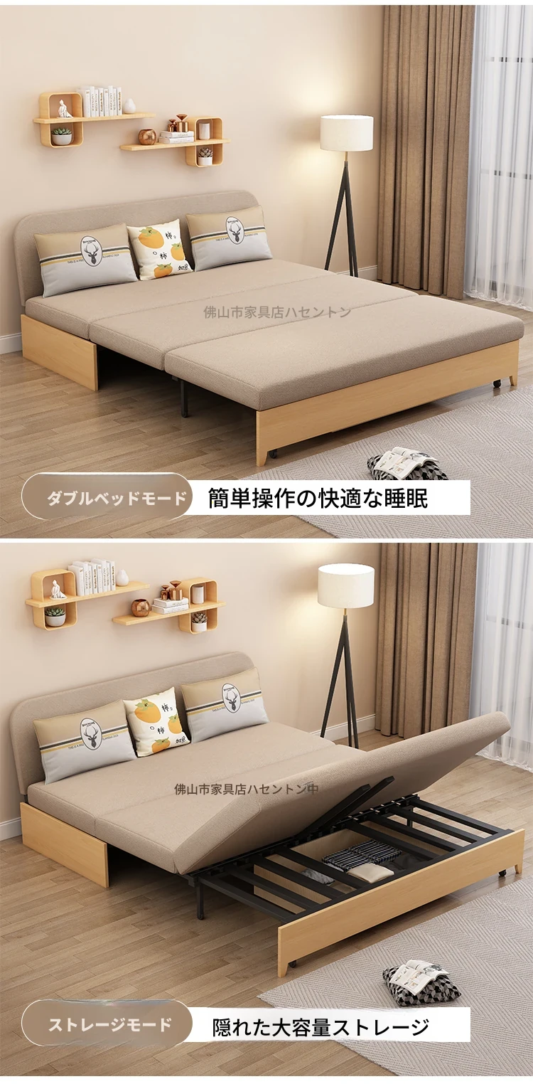 香港送料無料!実木製の折りたたみソファベッド - 新型2023年版、コンパクトな一人用・二人用、リビングに最適な多機能収納付き!