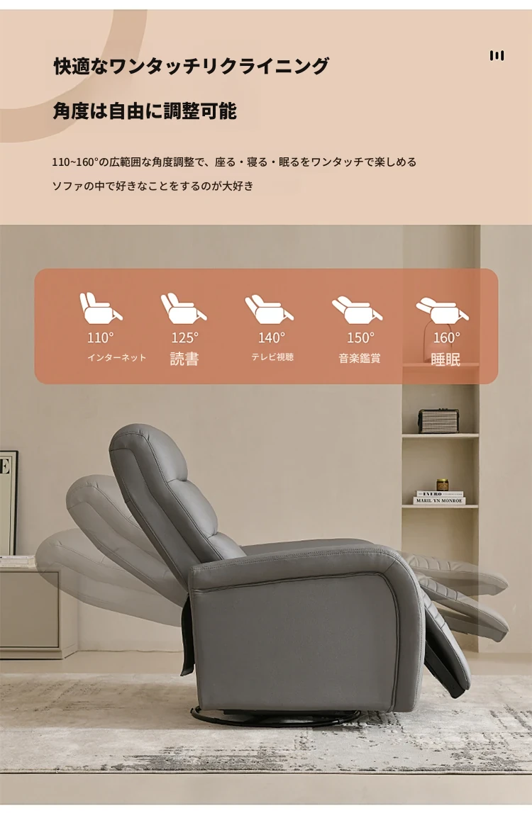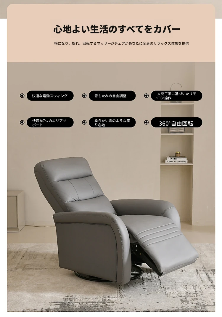 ドイツ輸入の多機能電動リクライニングソファチェア - リビングや寝室にぴったり!小スペースにも最適で、くつろぎながらリラックスできる回転式の一人用ソファ。快適なライフスタイルをサポートします!