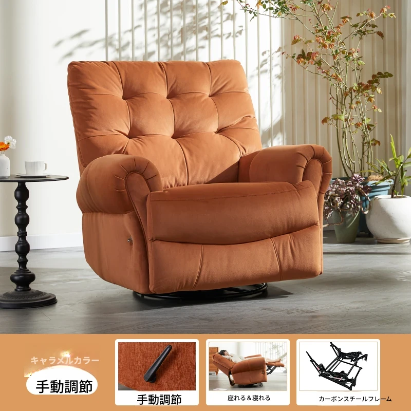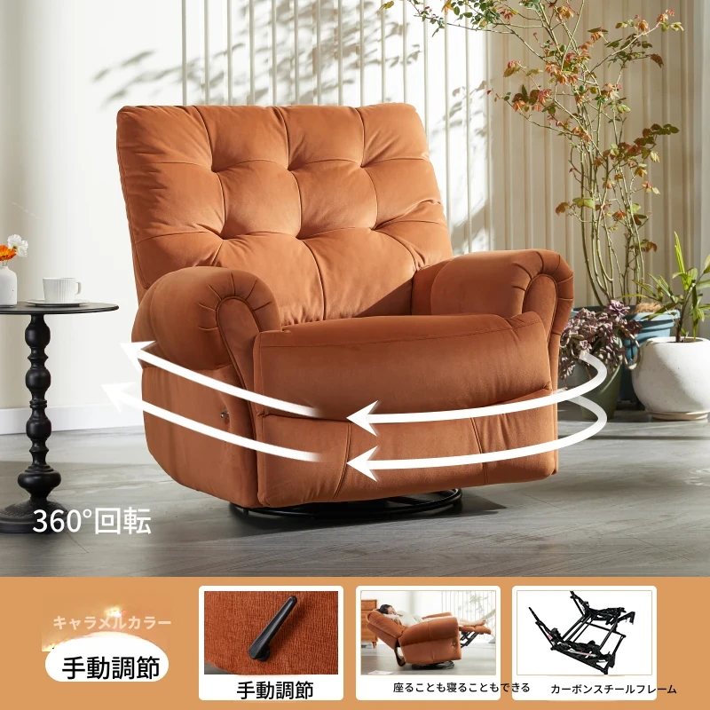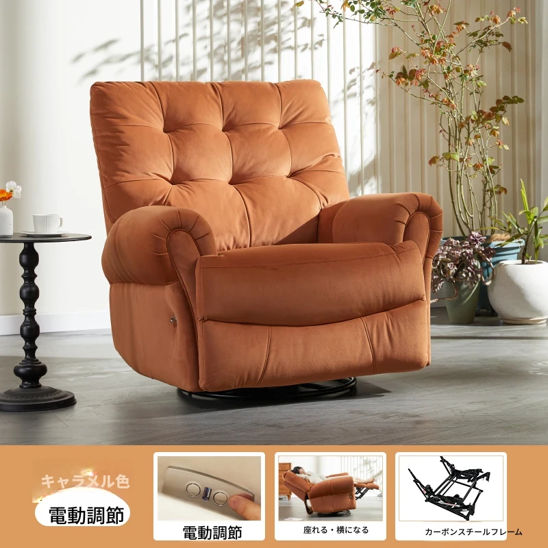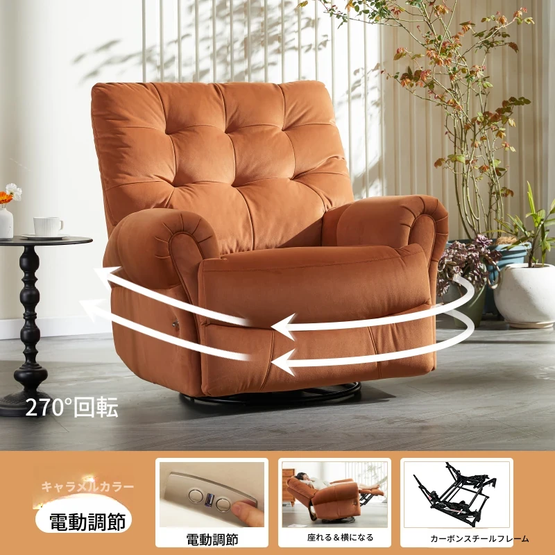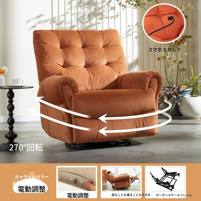 キャラメル色【電動リクライニング+USB+回転+スマホスタンド】