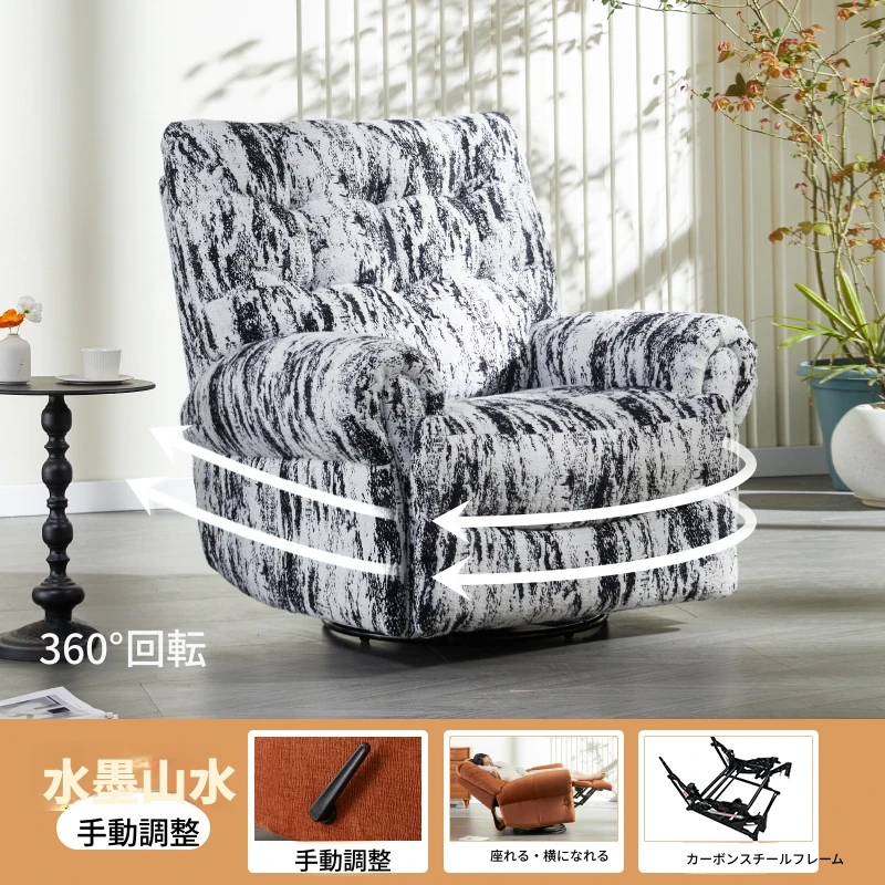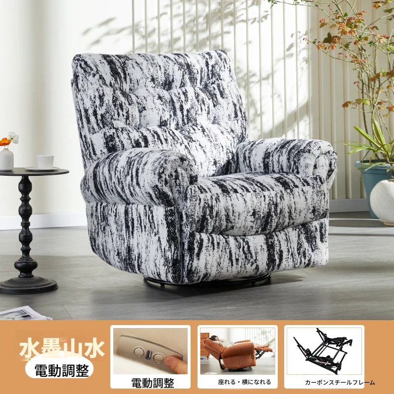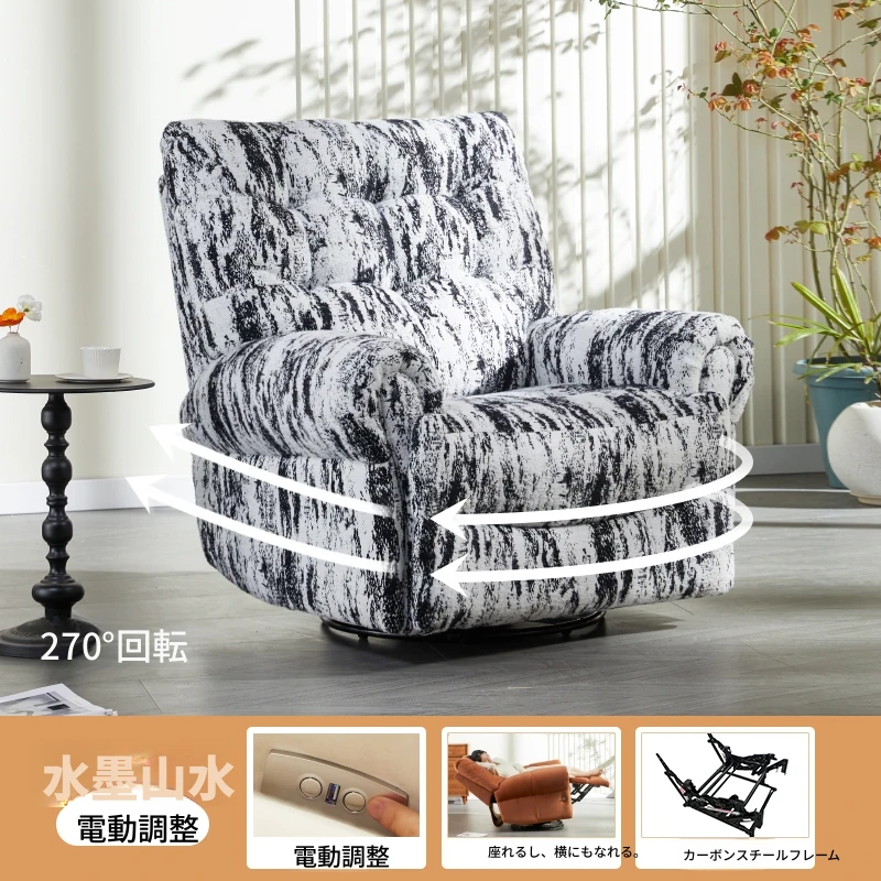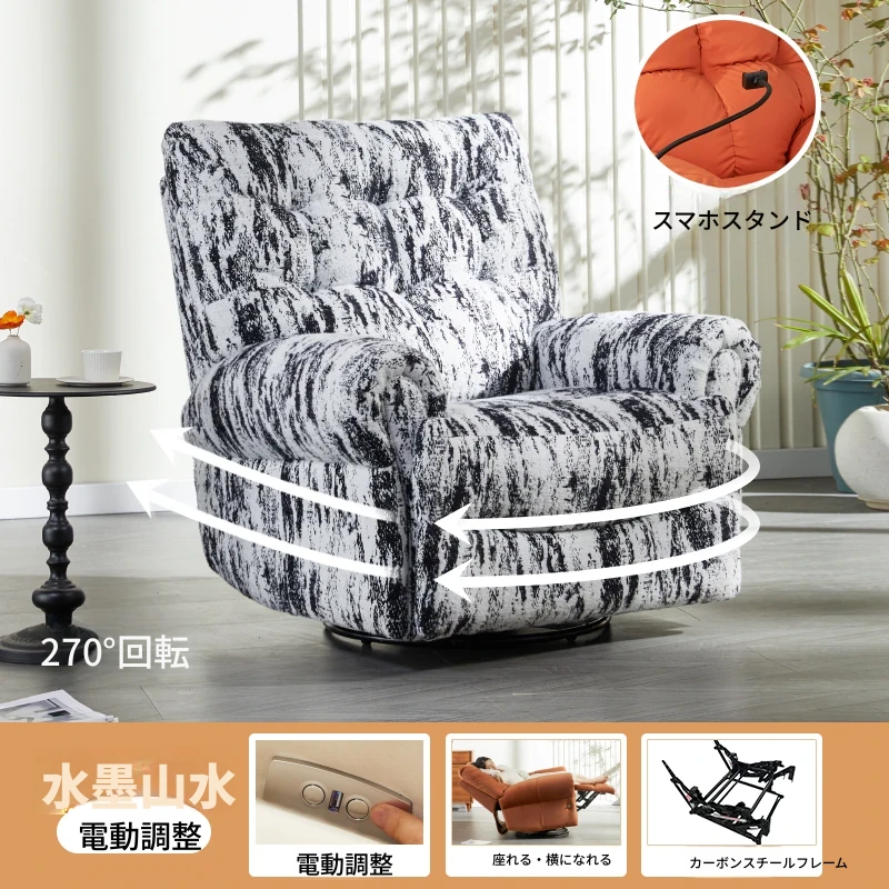 水墨山水【電動リクライニング+USB+回転+スマホスタンド】