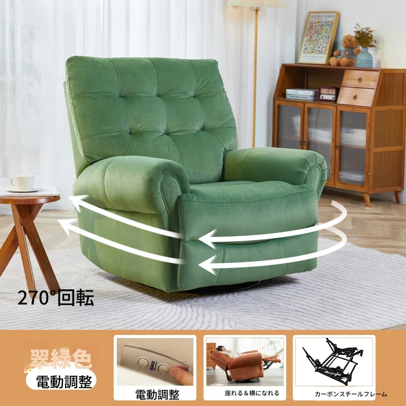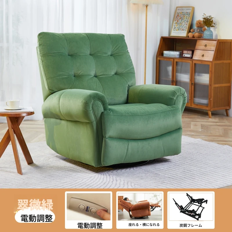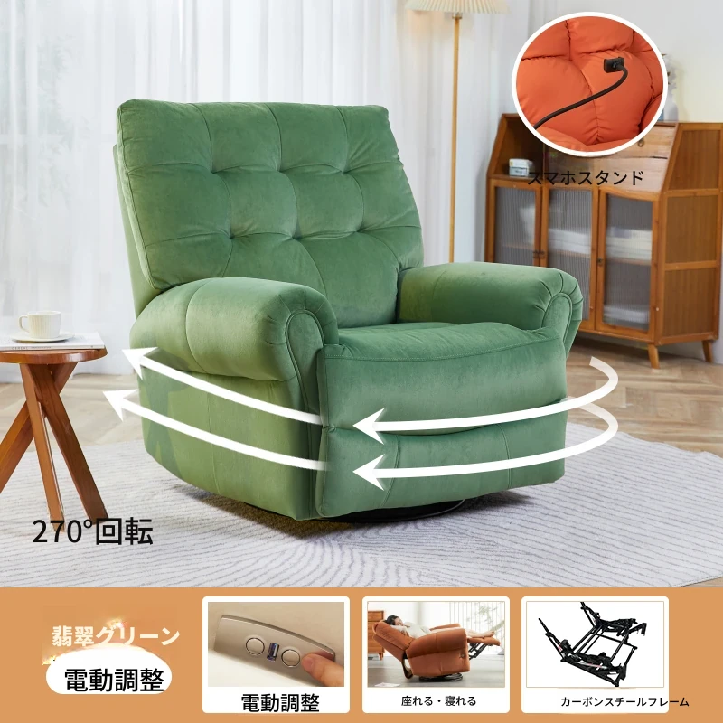 翠微緑【電動リクライニング+USB+回転+スマホスタンド】