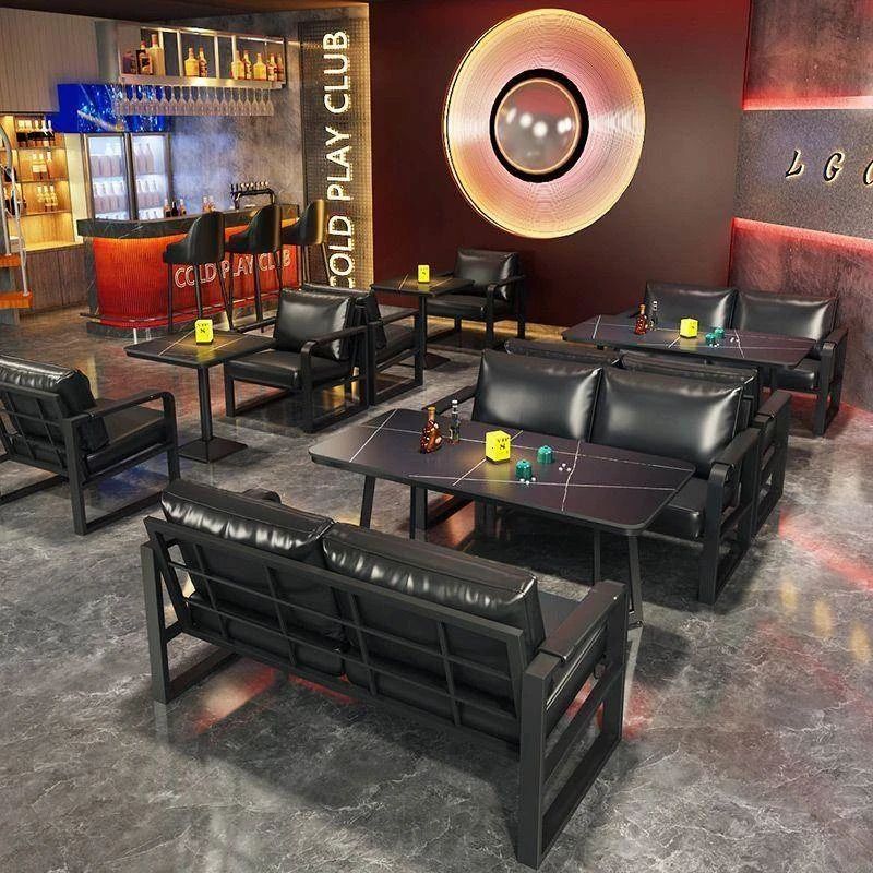 インダストリアルスタイルのバー用テーブルと椅子セット - おしゃれなカフェや音楽レストラン、焼肉店に最適な清潔感あふれるソファとボックスシート。商用利用にもぴったり!