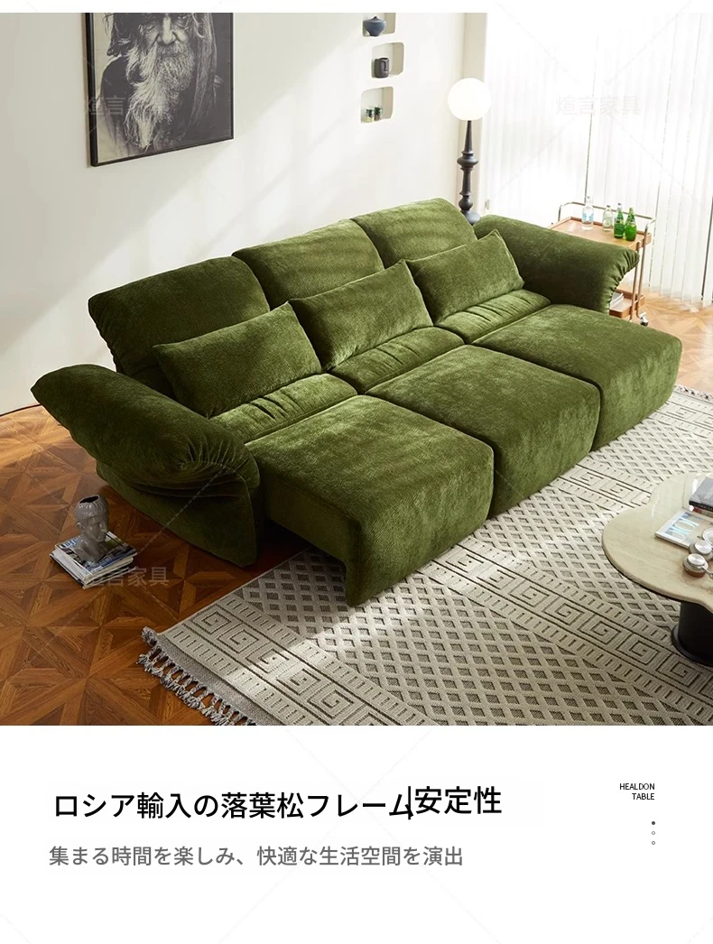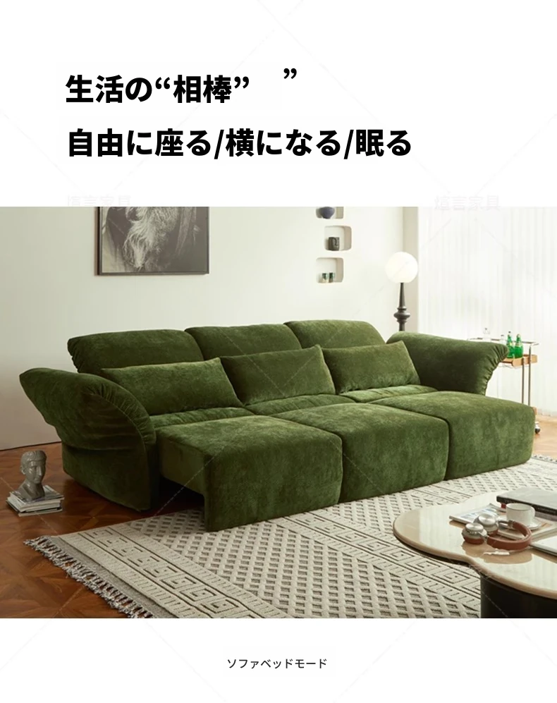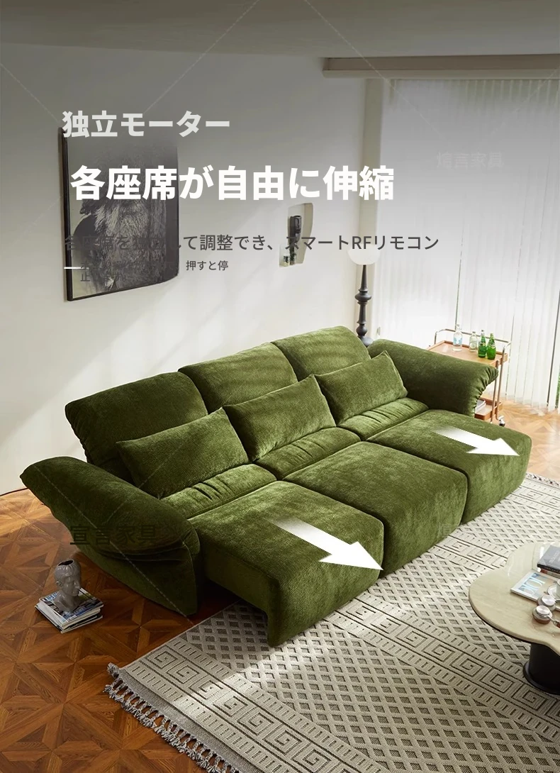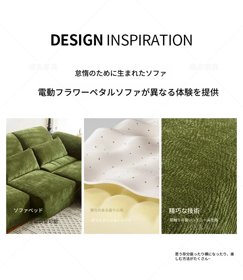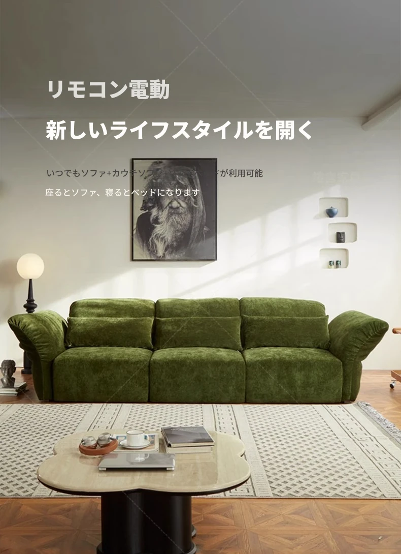 イタリアン電動機能付きフラワーペタルソファ - 壁にぴったりフィットするレトロモダンデザイン、伸縮可能でリラックスできるソファベッド。おしゃれなリビングに最適!