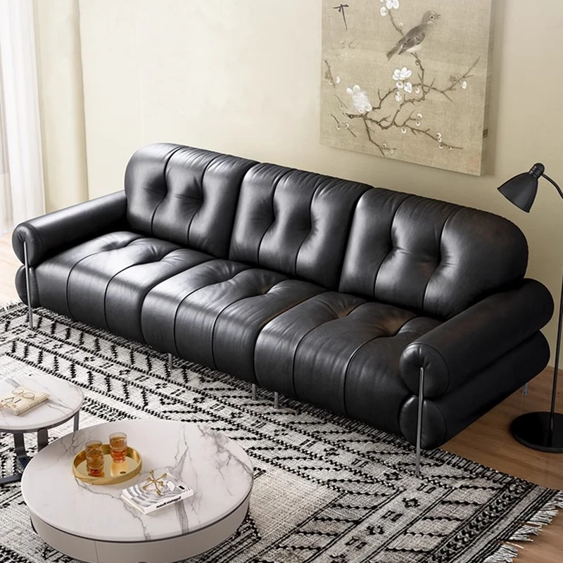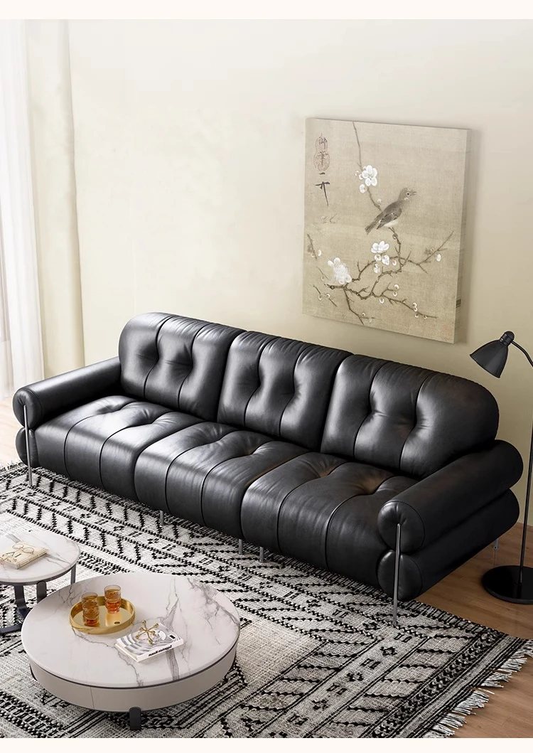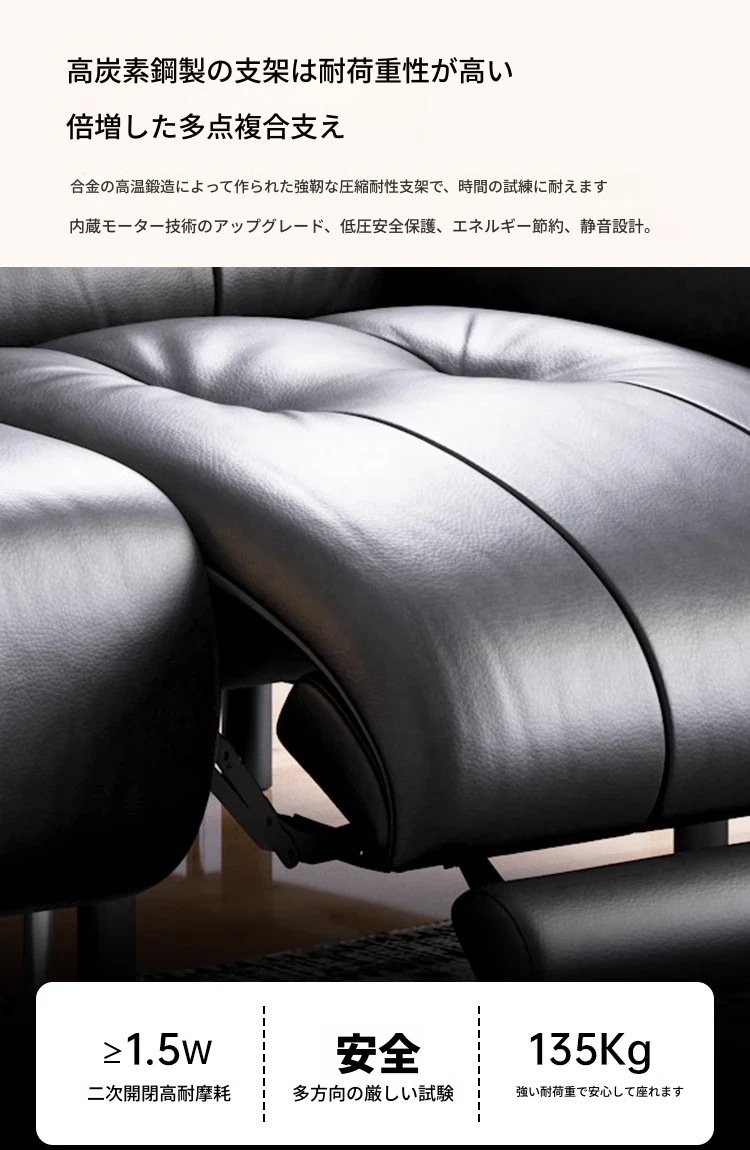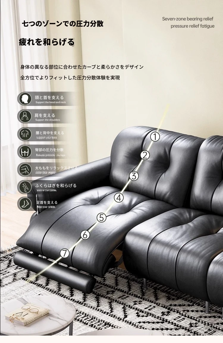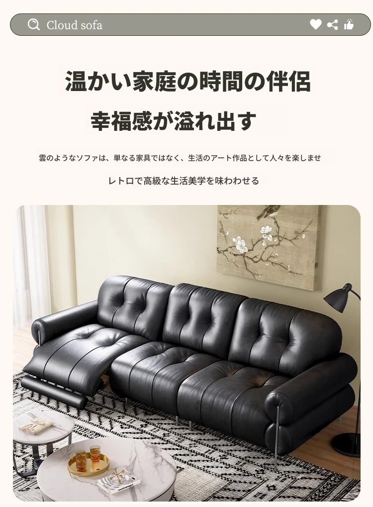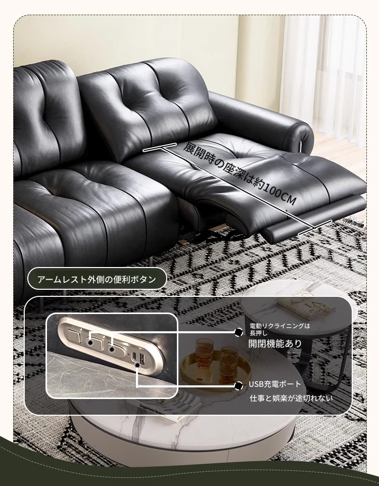 イタリアン本革電動リクライニングソファー - 高級トップグレイン牛革使用、壁際にぴったりフィットするレトロスタイルのブラックシュガーソファ。リラックスしたひとときをお楽しみください!