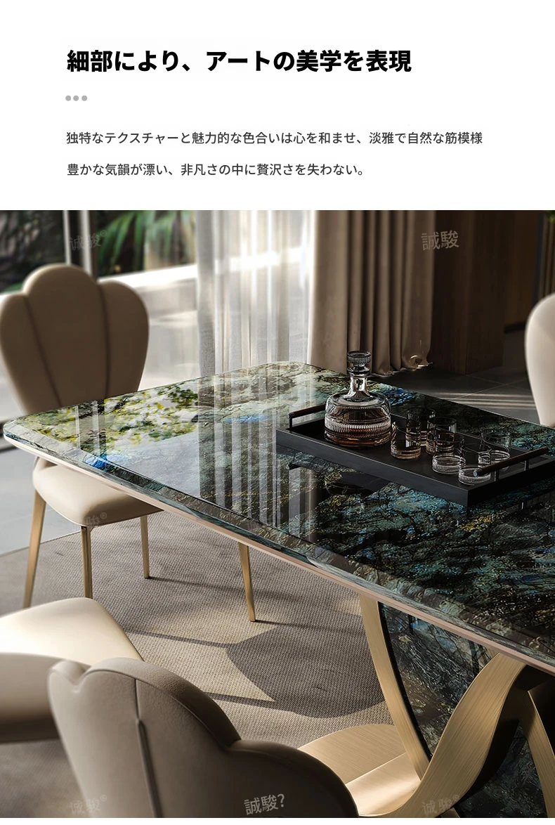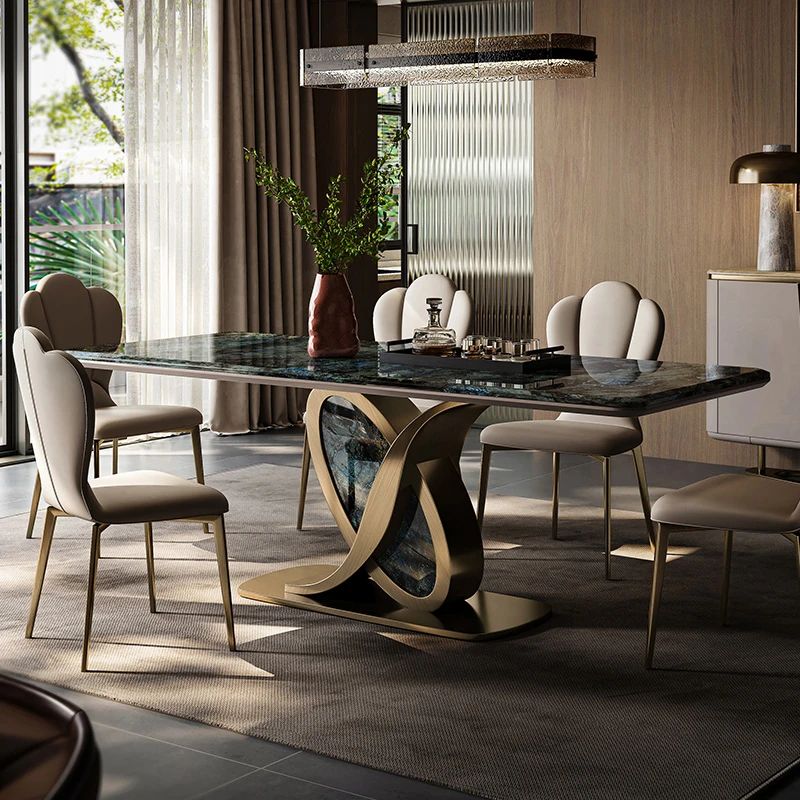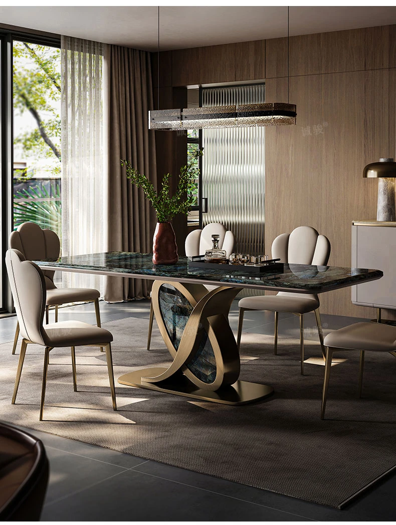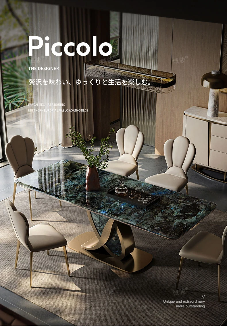 イタリアンラグジュアリー大理石ダイニングテーブル&チェアセット - モダンミニマリズムデザインの輸入ブルージェイドストーンテーブルで、洗練された食空間を演出します!