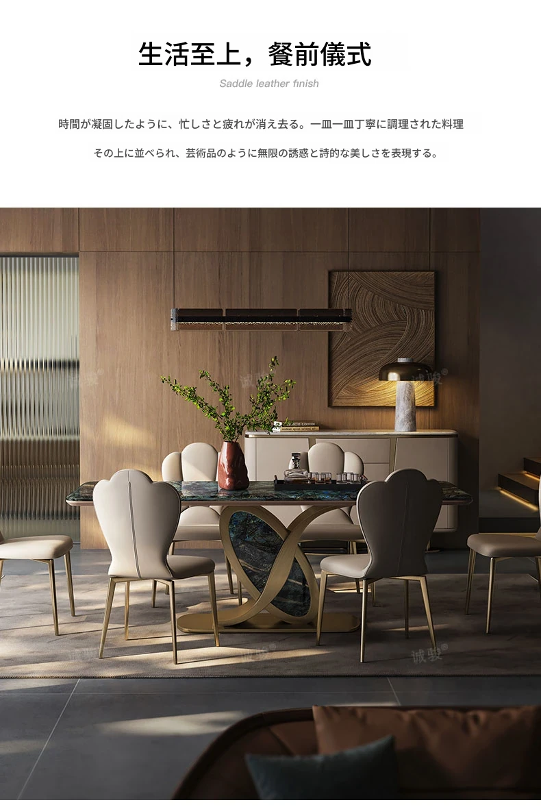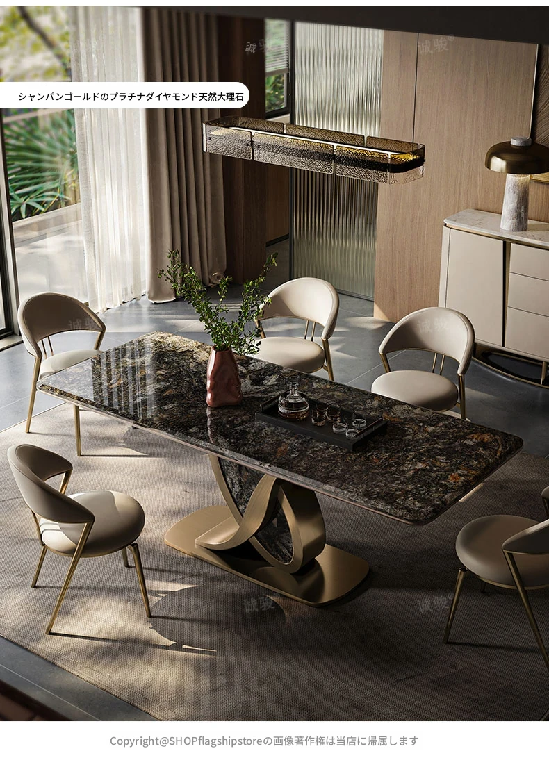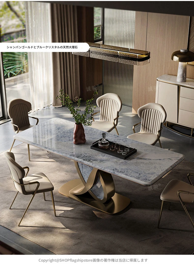 【サファイア/シャンパンゴールド】1.8メートルダイニングテーブル+CY004ダイニングチェア*6