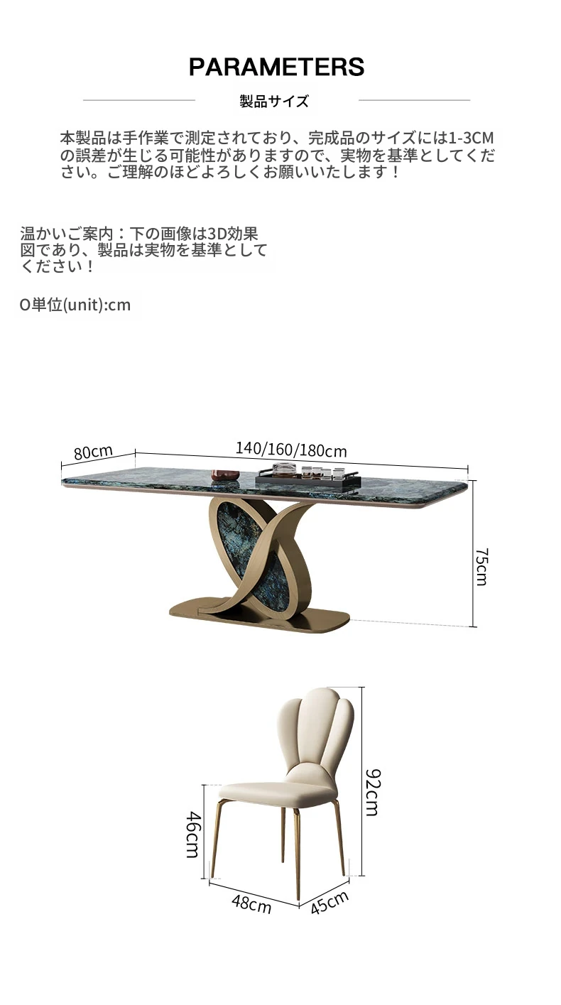 【サファイア/シャンパンゴールド】1.8メートルダイニングテーブル