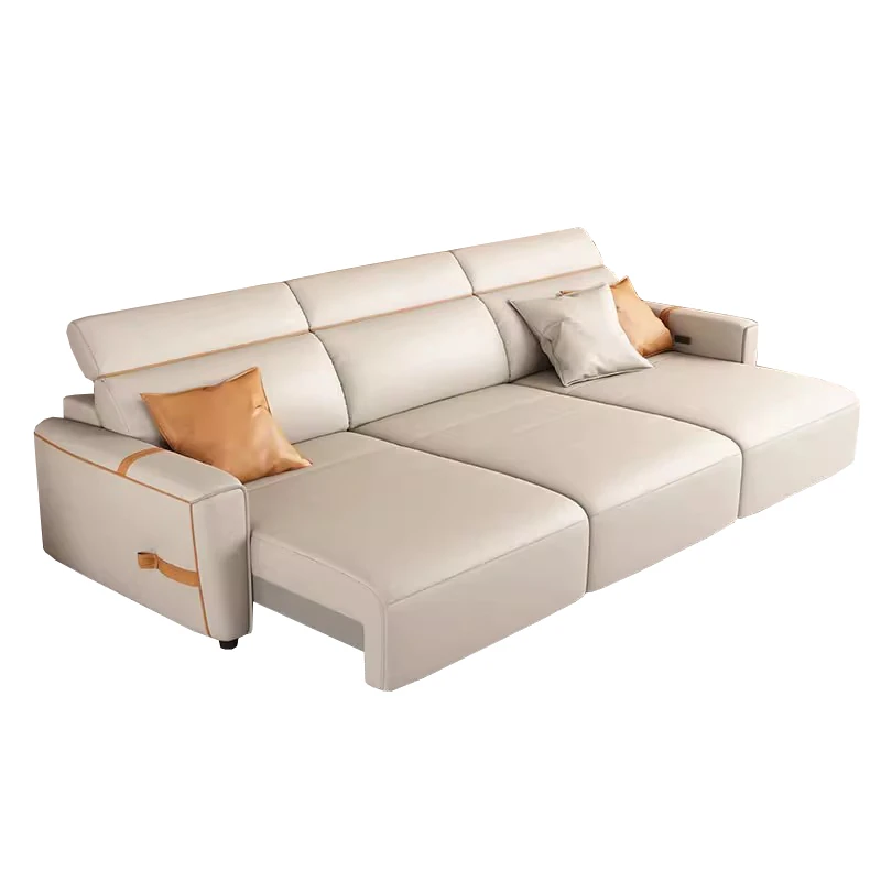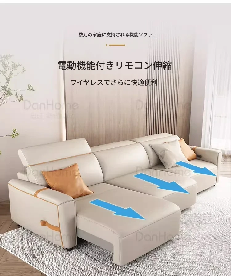 電動本革ソファ イタリアンミニマリズム コンパクトサイズ 壁にぴったりフィット リクライニング機能付き ソファベッドで快適な空間を実現!