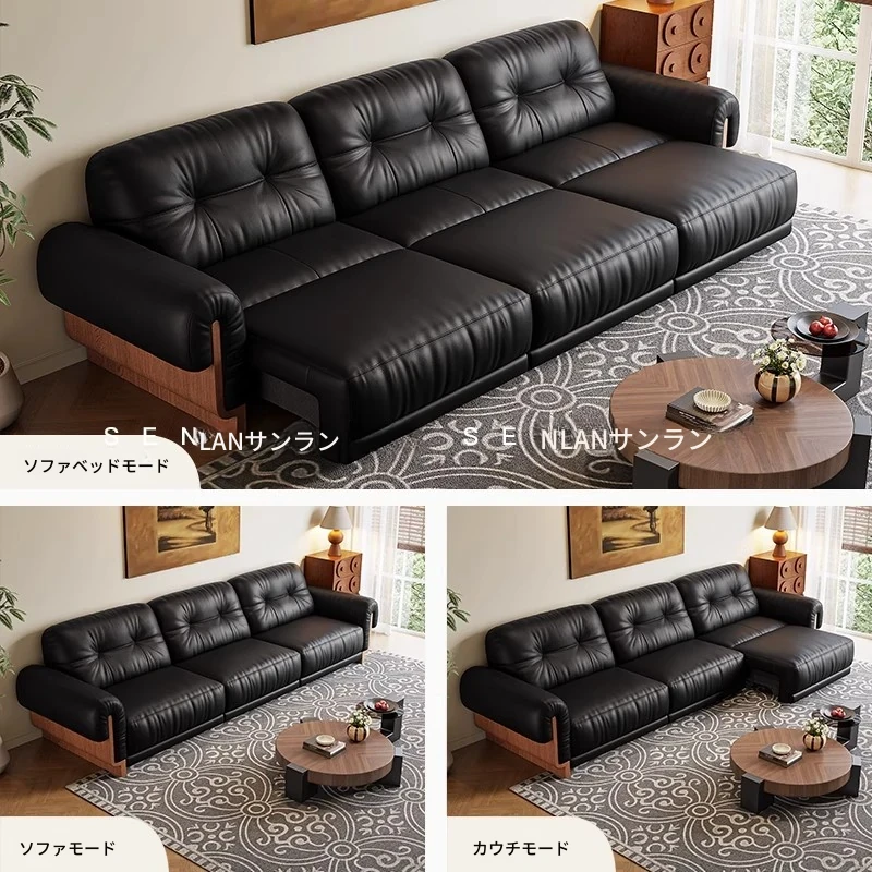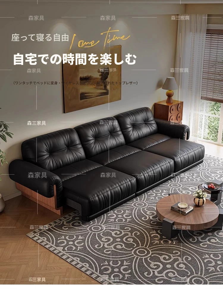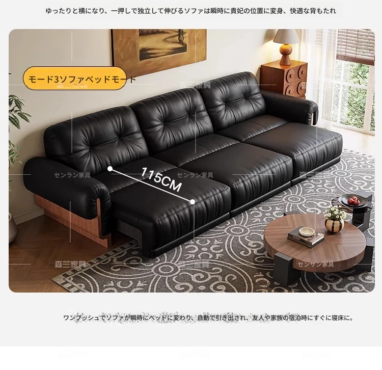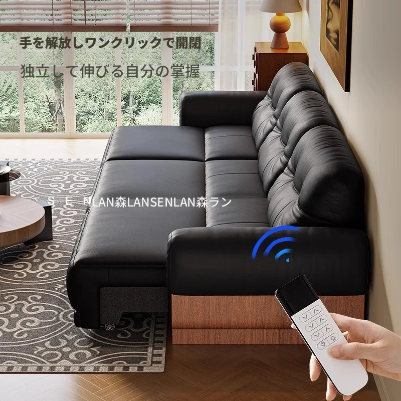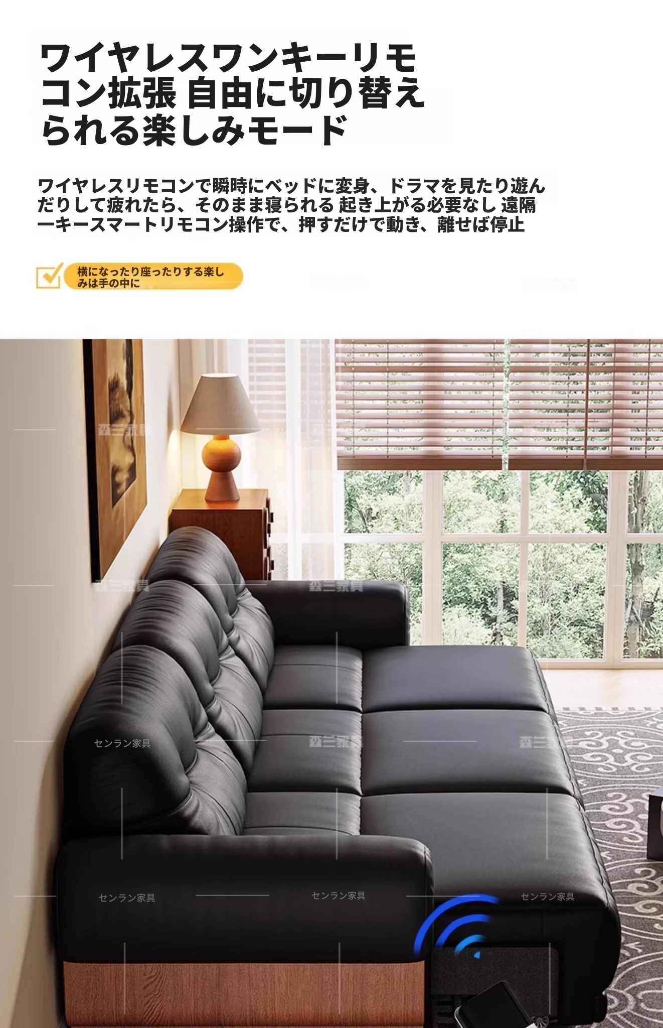 イタリアンミニマルデザインの電動多機能本革ソファベッド - 大小物件に最適!高品質の牛革使用、スライド式で便利な二用ソファ。快適な睡眠とリビング空間を実現します!