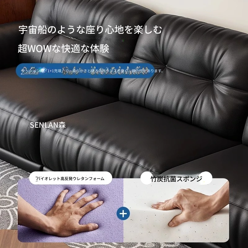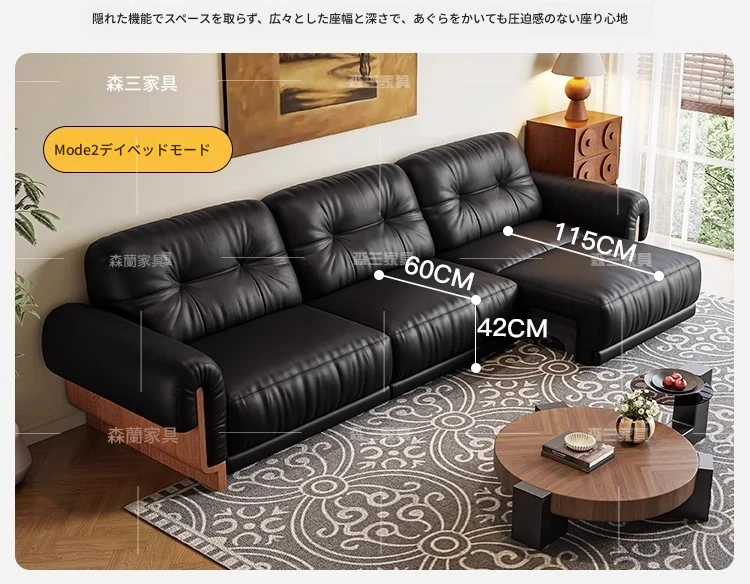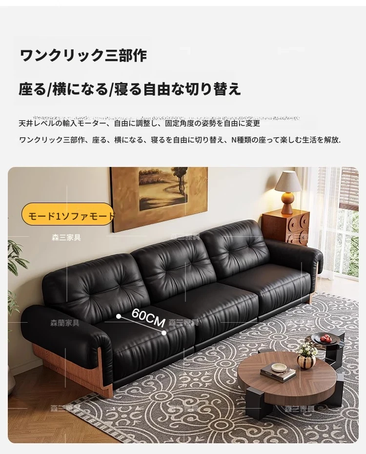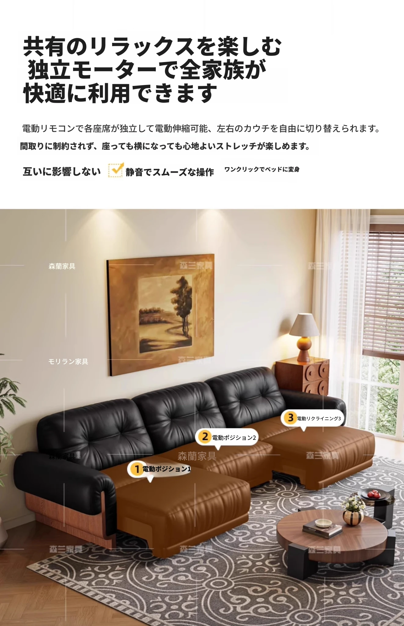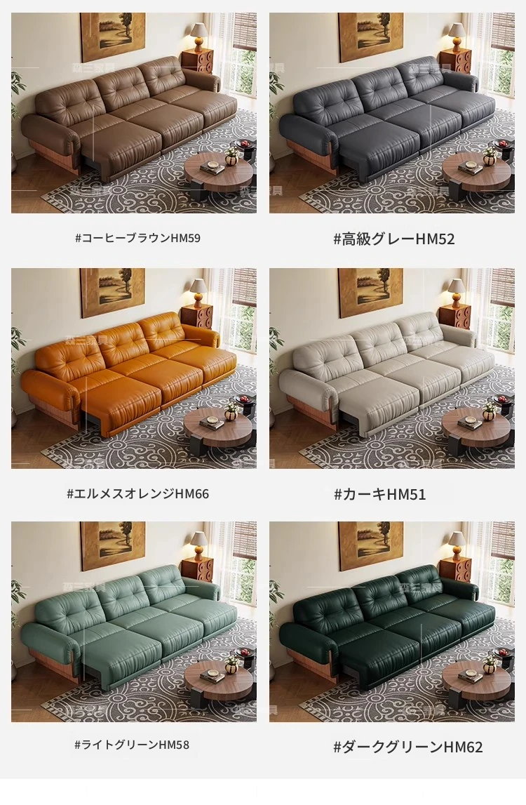 イタリアンミニマルデザインの電動多機能本革ソファベッド - 大小物件に最適!高品質の牛革使用、スライド式で便利な二用ソファ。快適な睡眠とリビング空間を実現します!