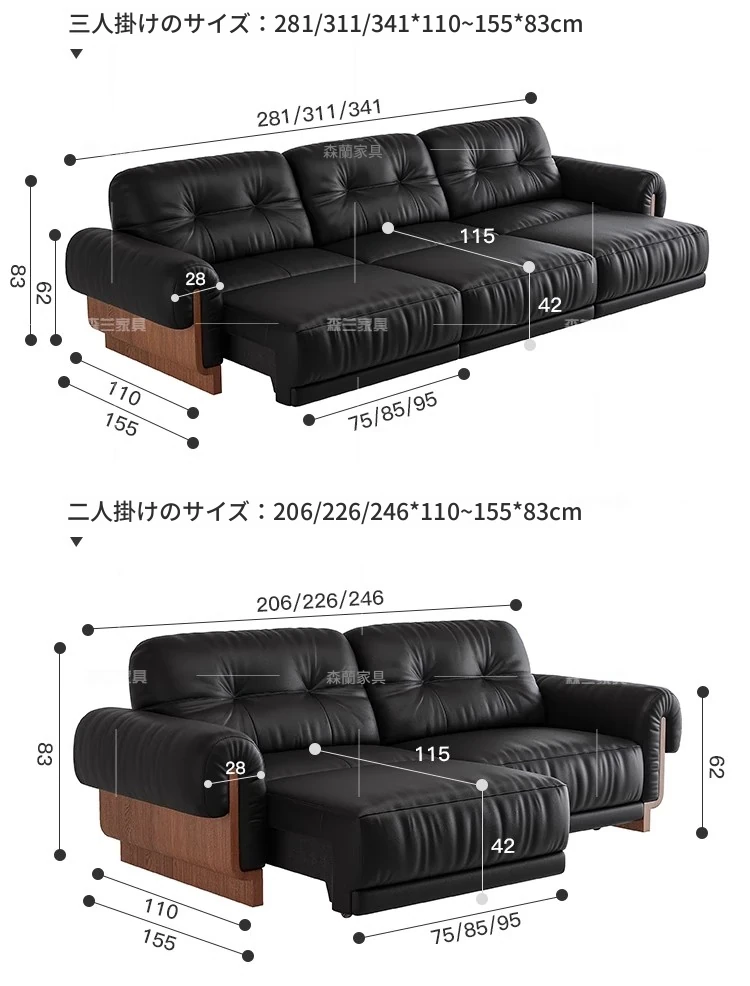 2.26m二人掛け(無線リモコン+静音二モーター)