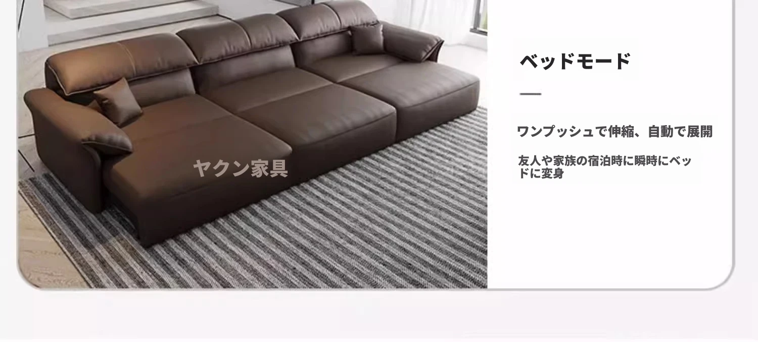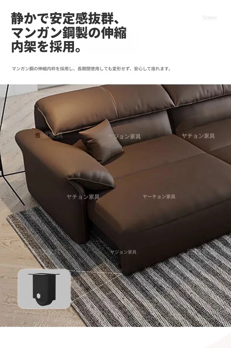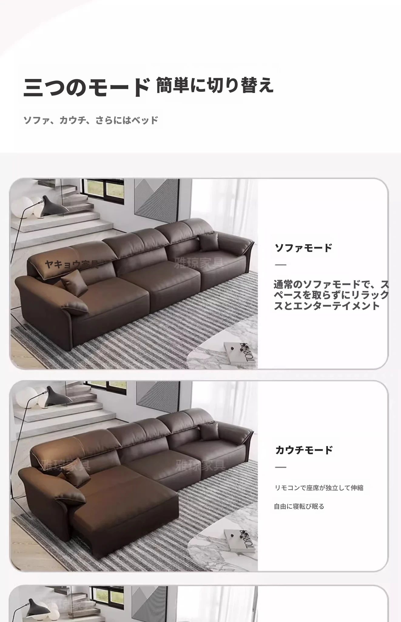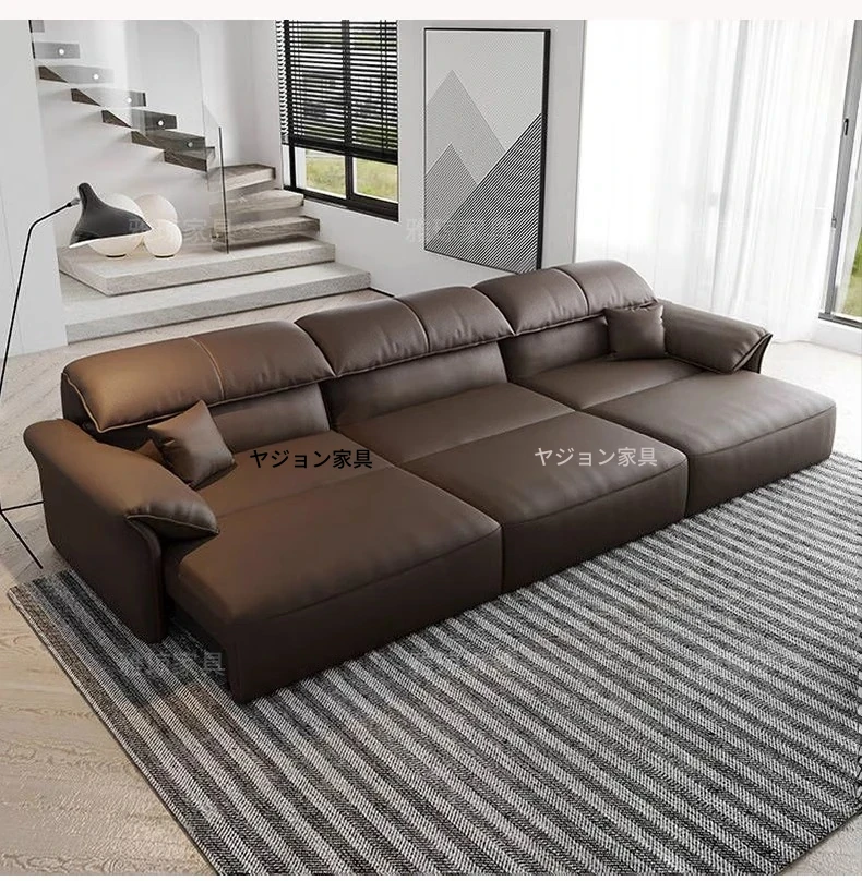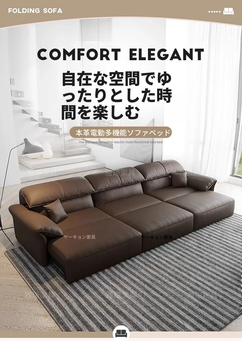 イタリアンミニマルデザイン!エレガントな象耳電動機能ソファ。二つの役割を持つシンプルなリビング用家具。小さなお部屋にもぴったりな高級本革仕立て。あなたの生活空間を洗練されたスタイルで彩ります!