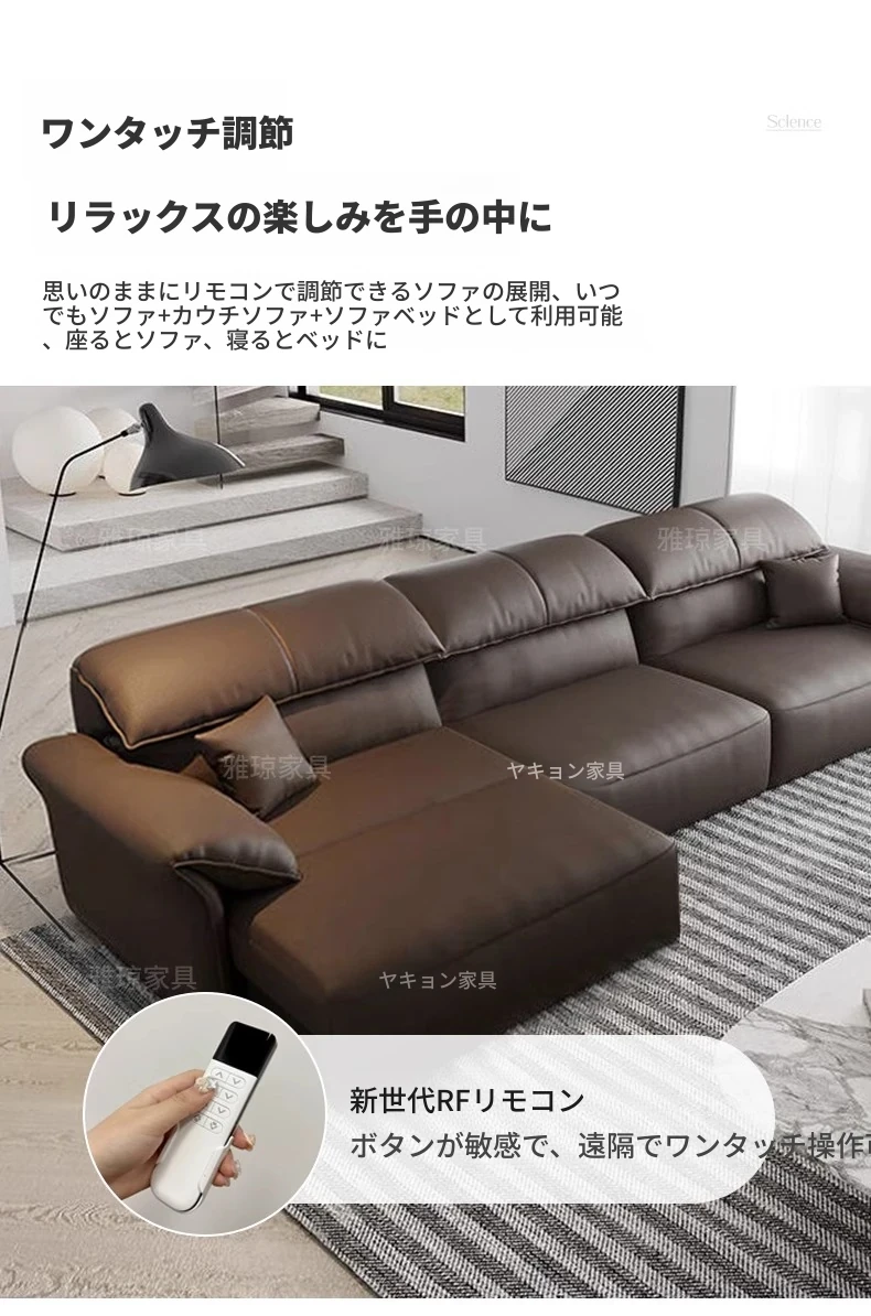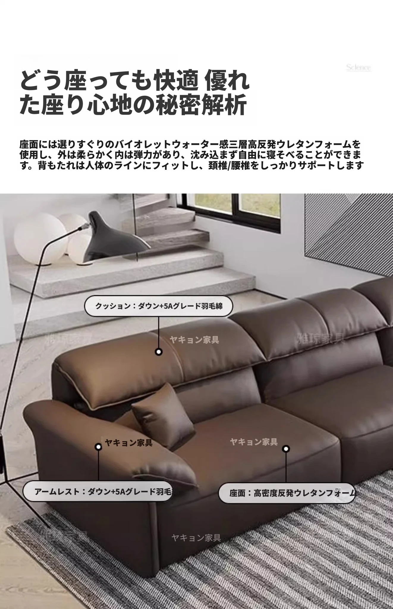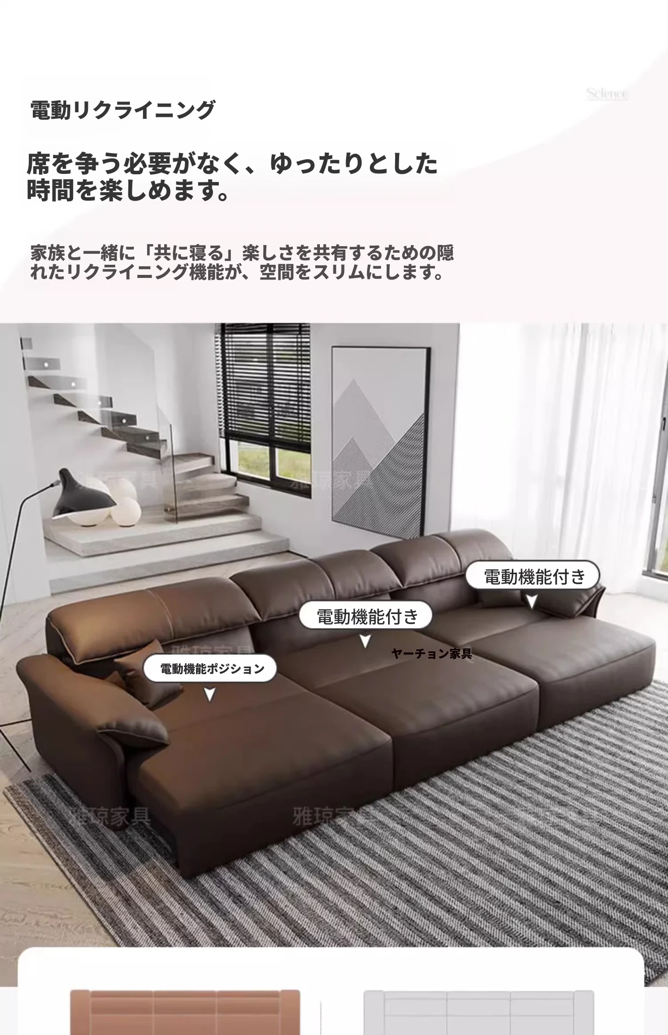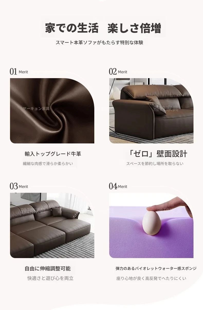 イタリアンミニマルデザイン!エレガントな象耳電動機能ソファ。二つの役割を持つシンプルなリビング用家具。小さなお部屋にもぴったりな高級本革仕立て。あなたの生活空間を洗練されたスタイルで彩ります!