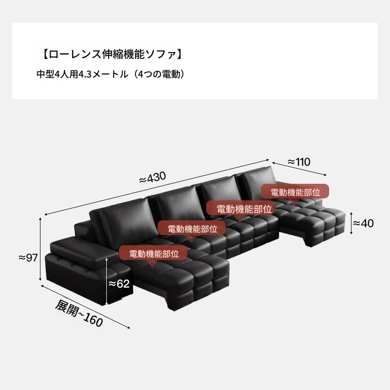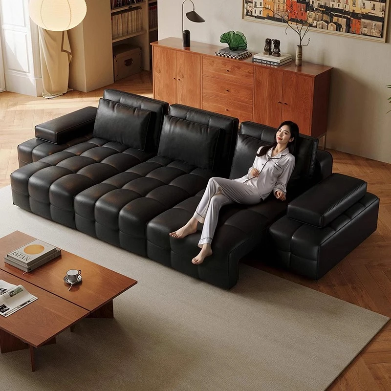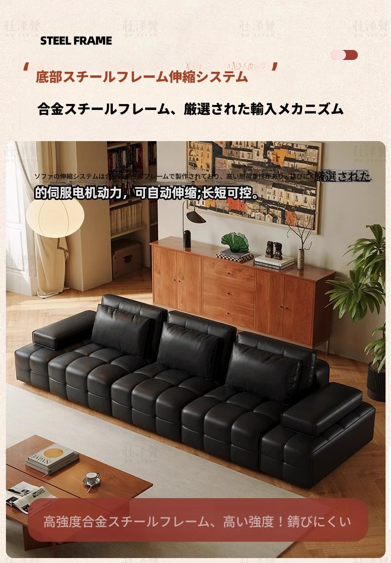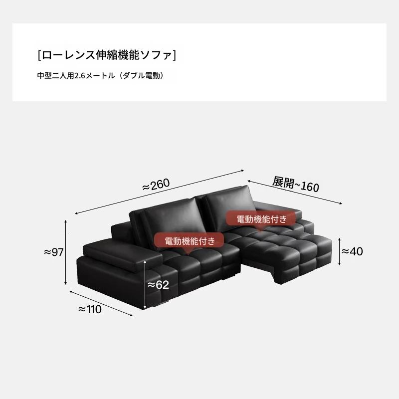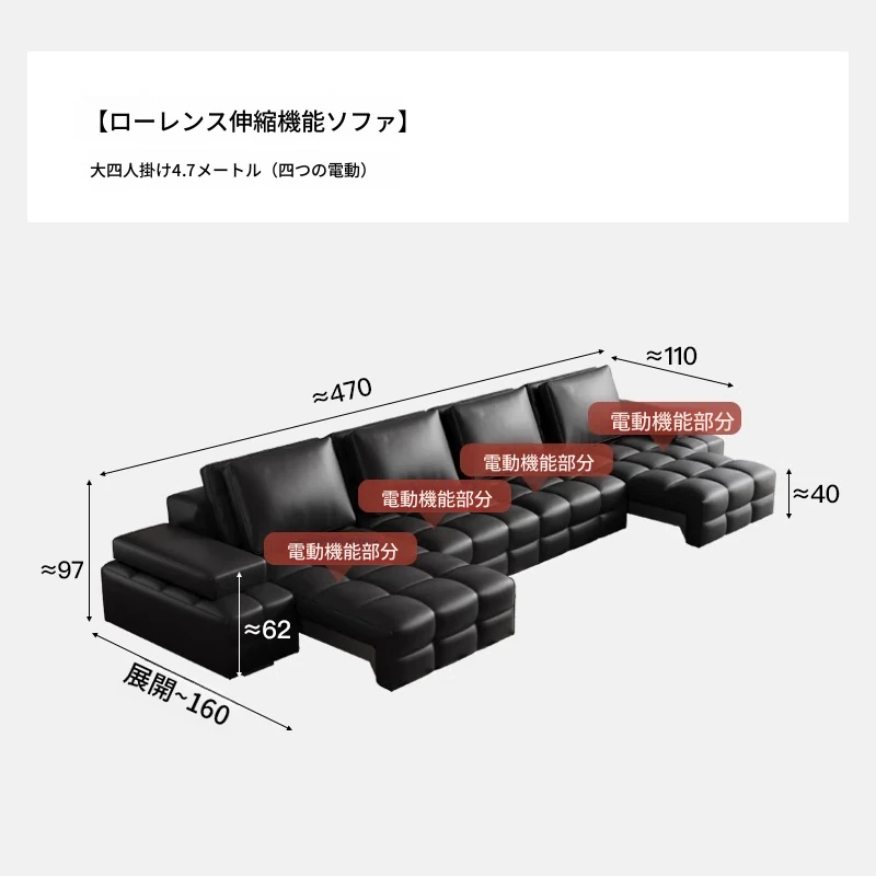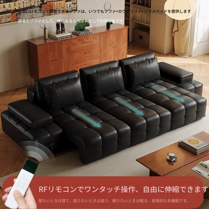 ローレンス本革電動ソファ 壁に寄せられる多機能大平層別荘用 自動伸縮2WAYソファベッドで快適なリラックス空間を実現!